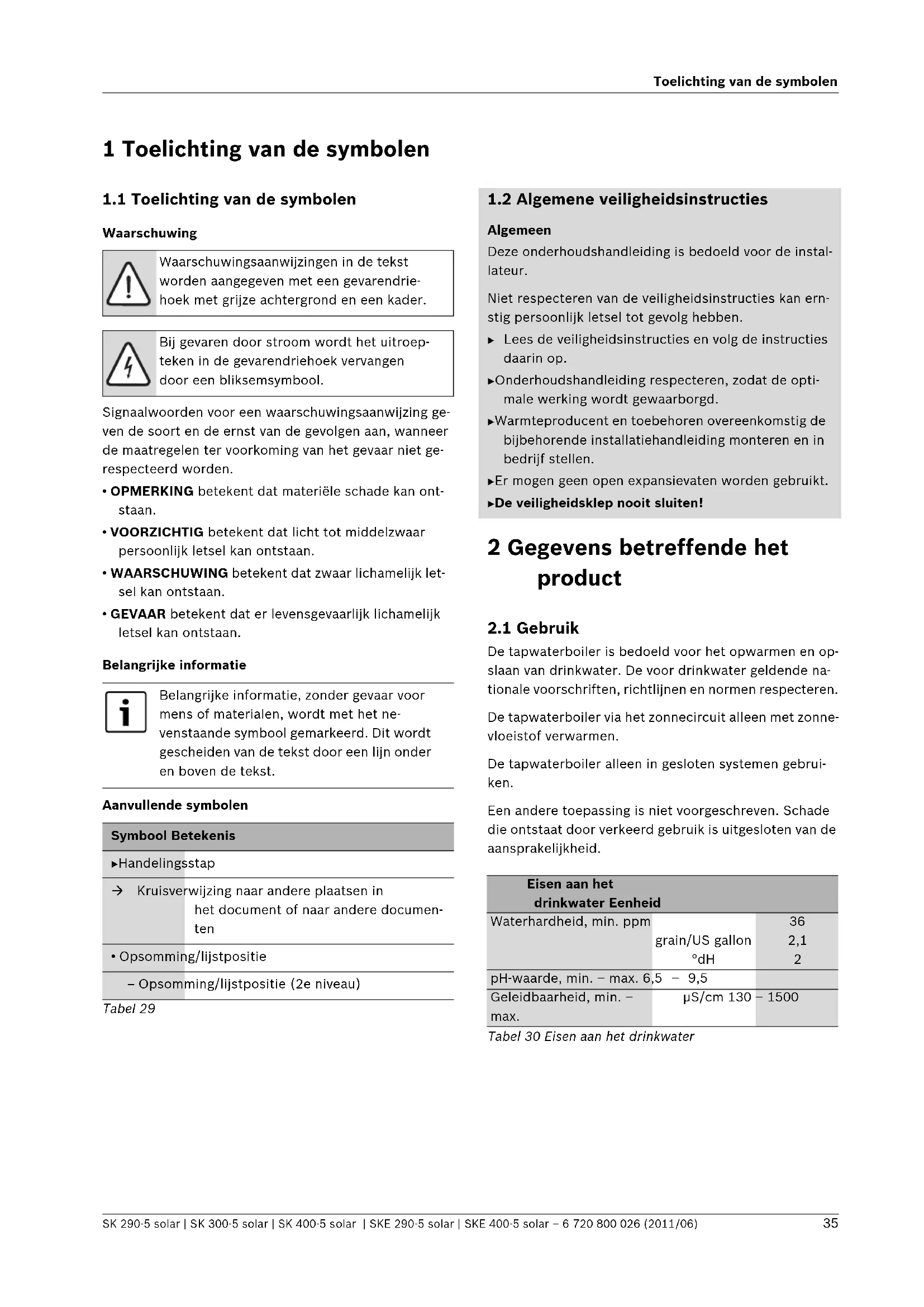 De tapwaterboiler is bedoeld voor het opwarmen en opslaan van drinkwater. De voor drinkwater geldende nationale voorschriften, richtlijnen en normen respecteren.