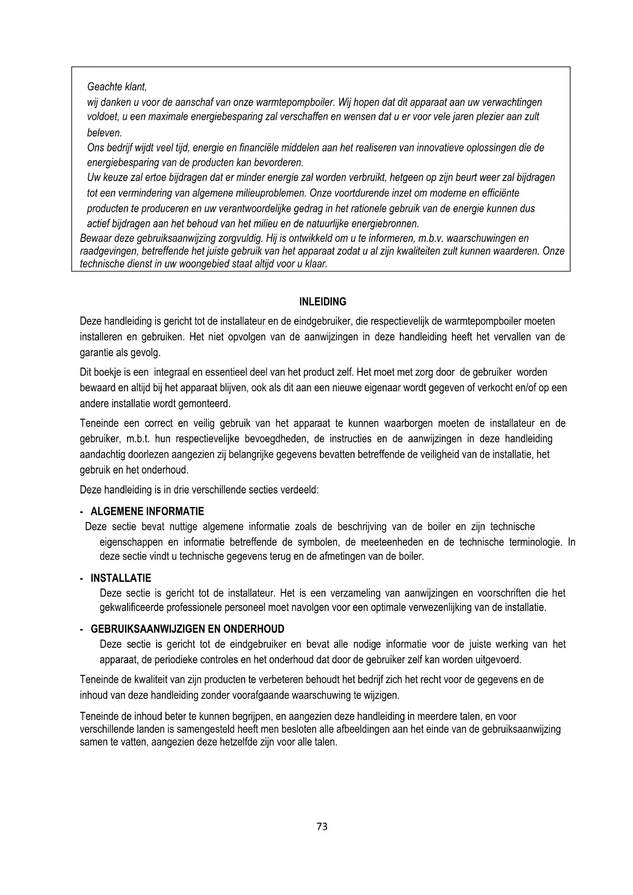 Geachte klant, wij danken u voor de aanschaf van onze warmtepompboiler. Wij hopen dat dit apparaat aan uw verwachtingen voldoet, u een maximale energiebesparing zal verschaffen en wensen dat u er voor vele jaren plezier aan zult beleven. Ons bedrijf wijdt veel tijd, energie en financiële middelen aan het realiseren van innovatieve oplossingen die de energiebesparing van de producten kan bevorderen. Uw keuze zal ertoe bijdragen dat er minder energie zal worden verbruikt, hetgeen op zijn beurt weer zal bijdragen tot een vermindering van algemene milieuproblemen. Onze voortdurende inzet om moderne en efficiënte producten te produceren en uw verantwoordelijke gedrag in het rationele gebruik van de energie kunnen dus actief bijdragen aan het behoud van het milieu en de natuurlijke energiebronnen. Bewaar deze gebruiksaanwijzing zorgvuldig. Hij is ontwikkeld om u te informeren, m.b.v. waarschuwingen en raadgevingen, betreffende het juiste gebruik van het apparaat zodat u al zijn kwaliteiten zult kunnen waarderen. Onze technische dienst in uw woongebied staat altijd voor u klaar.