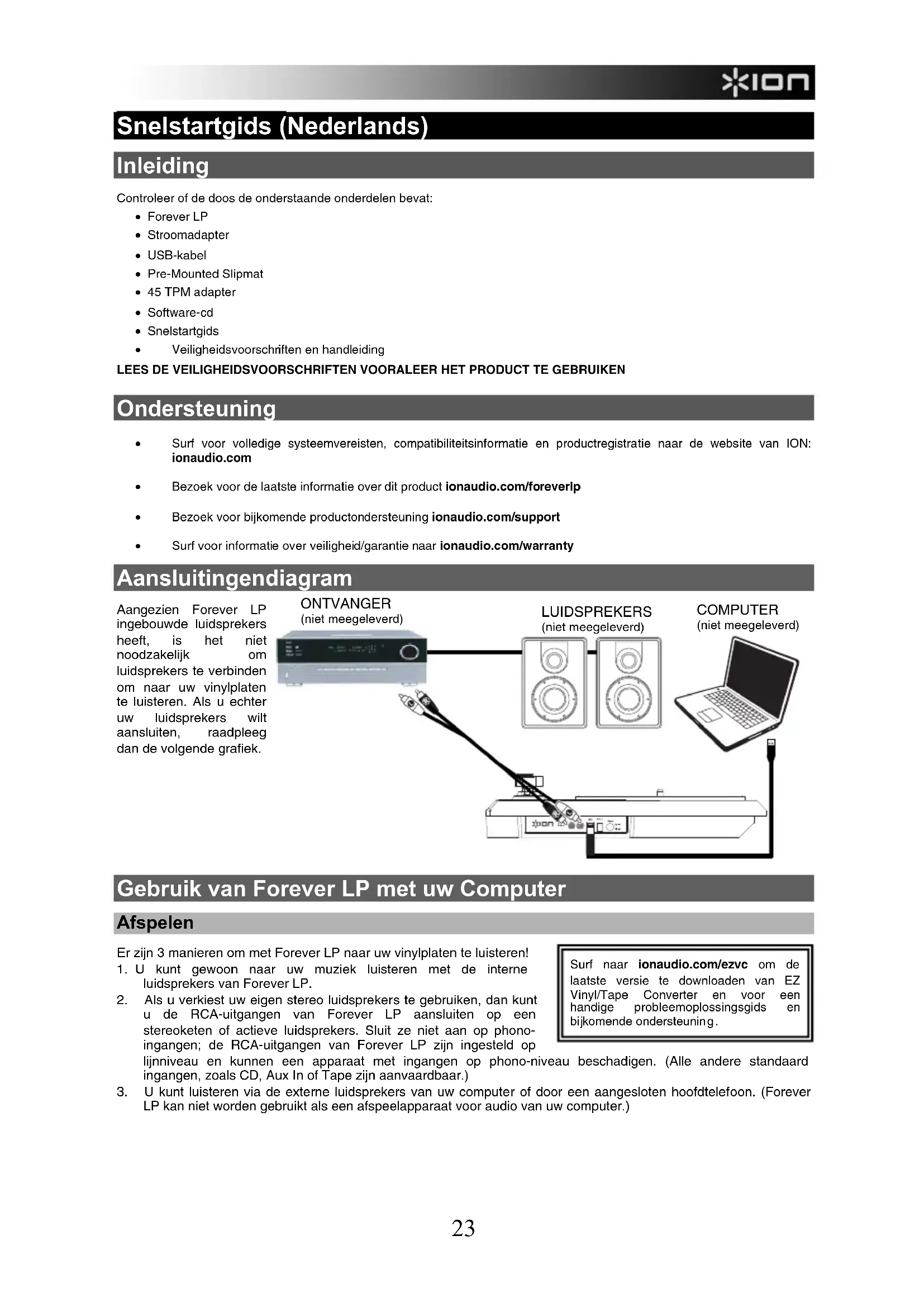 - Bezoek voor de laatste informatie over dit product ionaudio.com/foreverlp