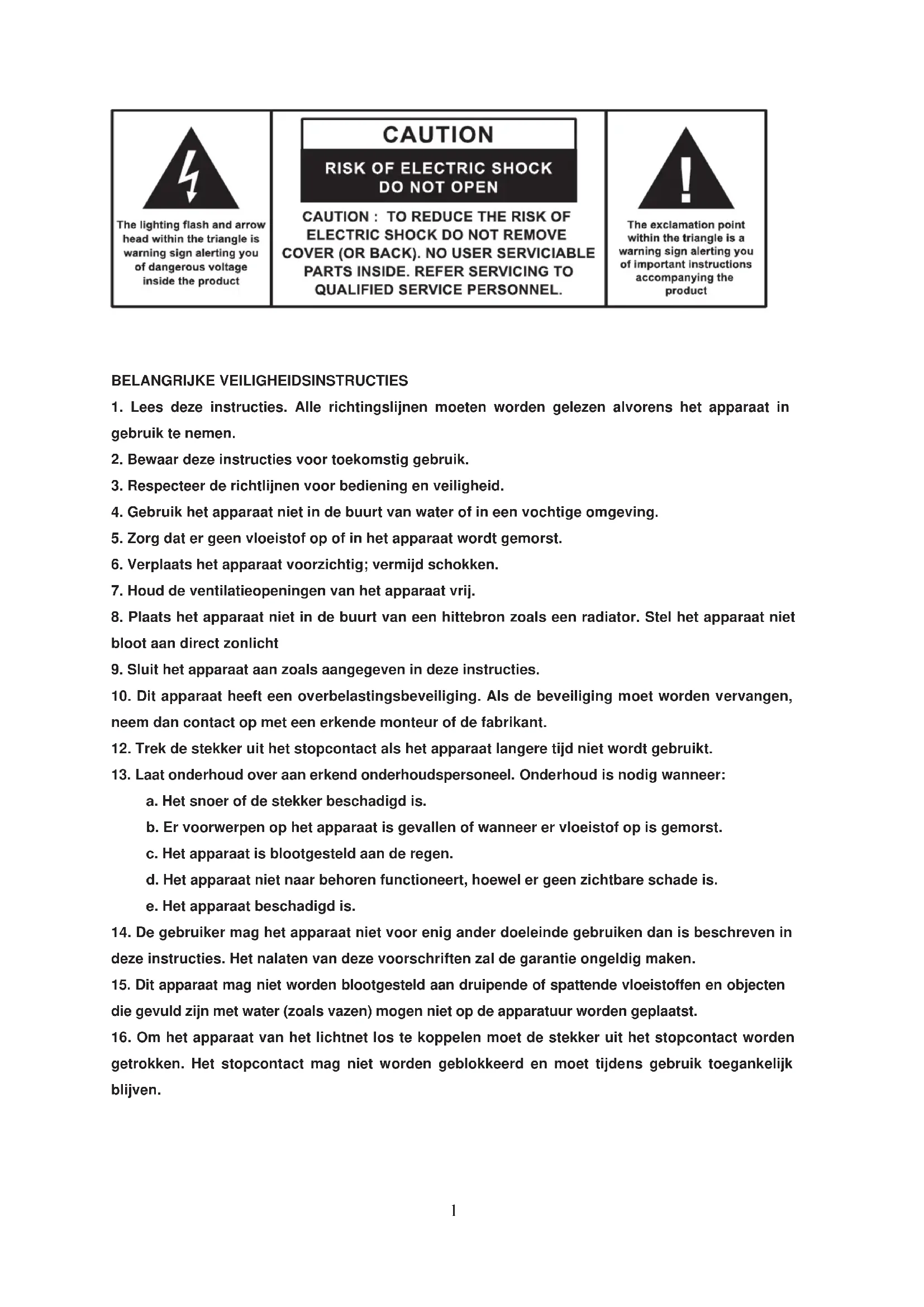 1. Lees deze instructies. Alle richtingslijnen moeten worden gelezen alvorens het apparaat in