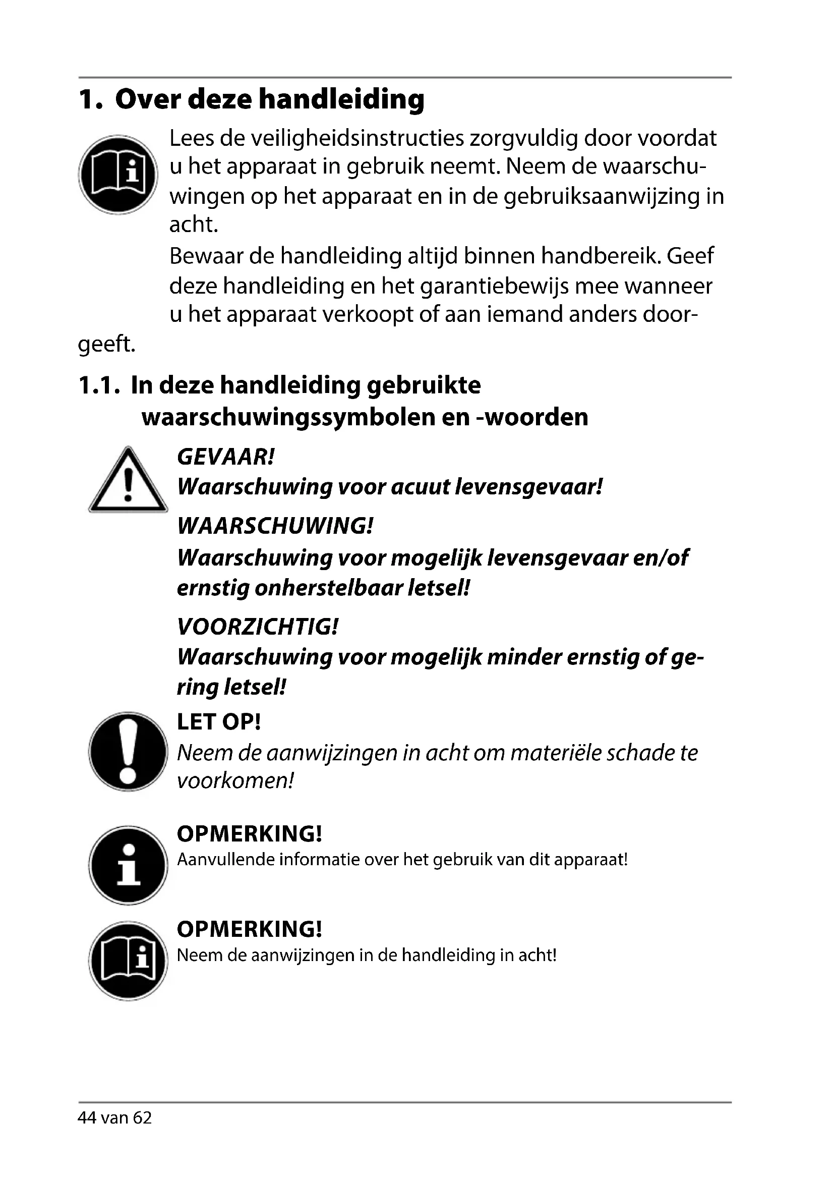 1.1. In deze handleiding gebruikte waarschuwingssymbolen en -woorden