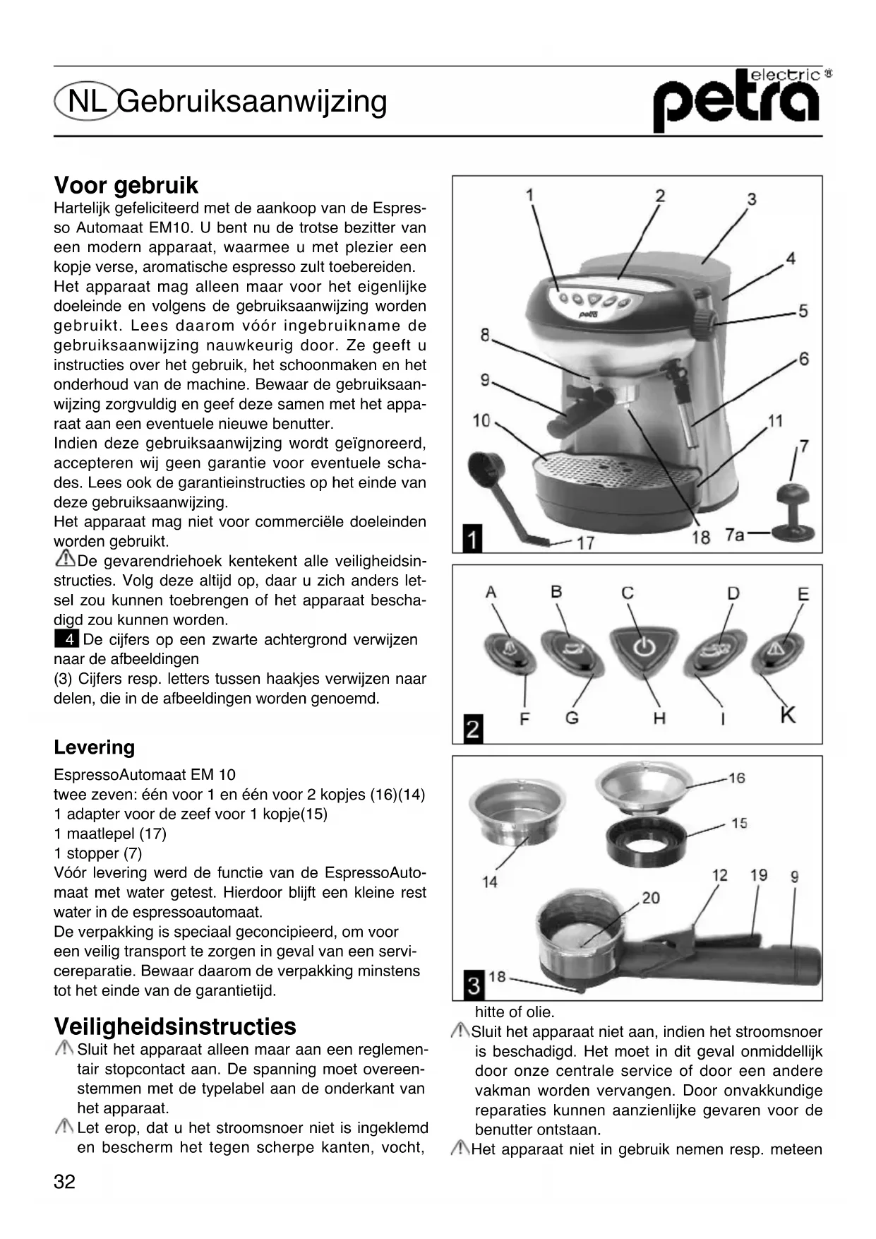 GEBRUIKSAANWIJZING EspressoAutomat EM 10 Petra Electric