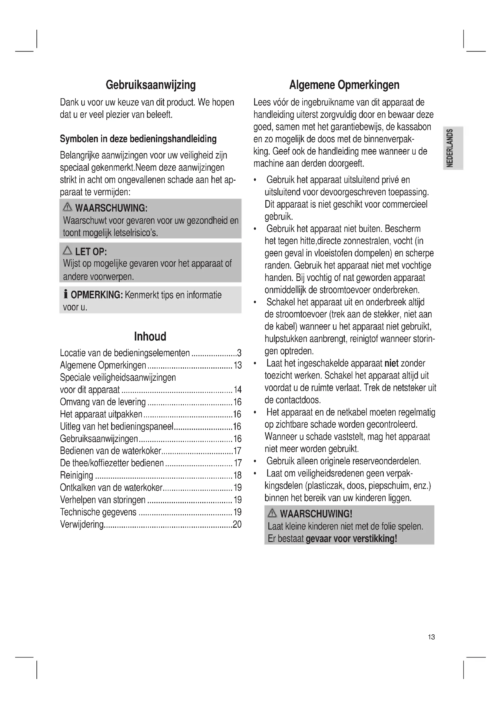 - Dompeldewaterkokerofhetapparaatzelfnooitonderinwaterof andere vloeistoffen. LET OP: