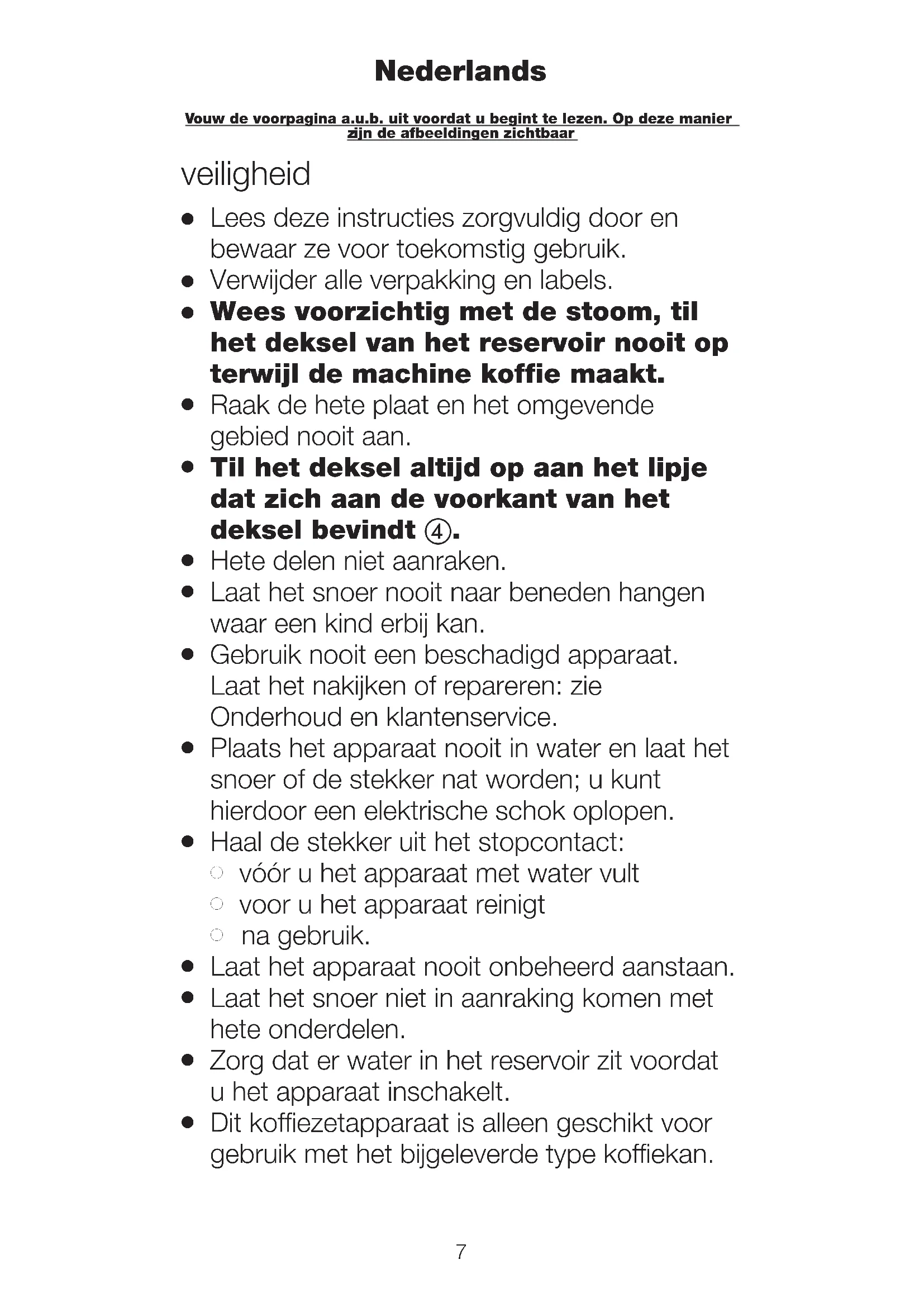 ouw de voorpagina a.u.b. uit voordat u begint te lezen. Op deze manier ijn de afbeeldingen zichtbaar veiligheid