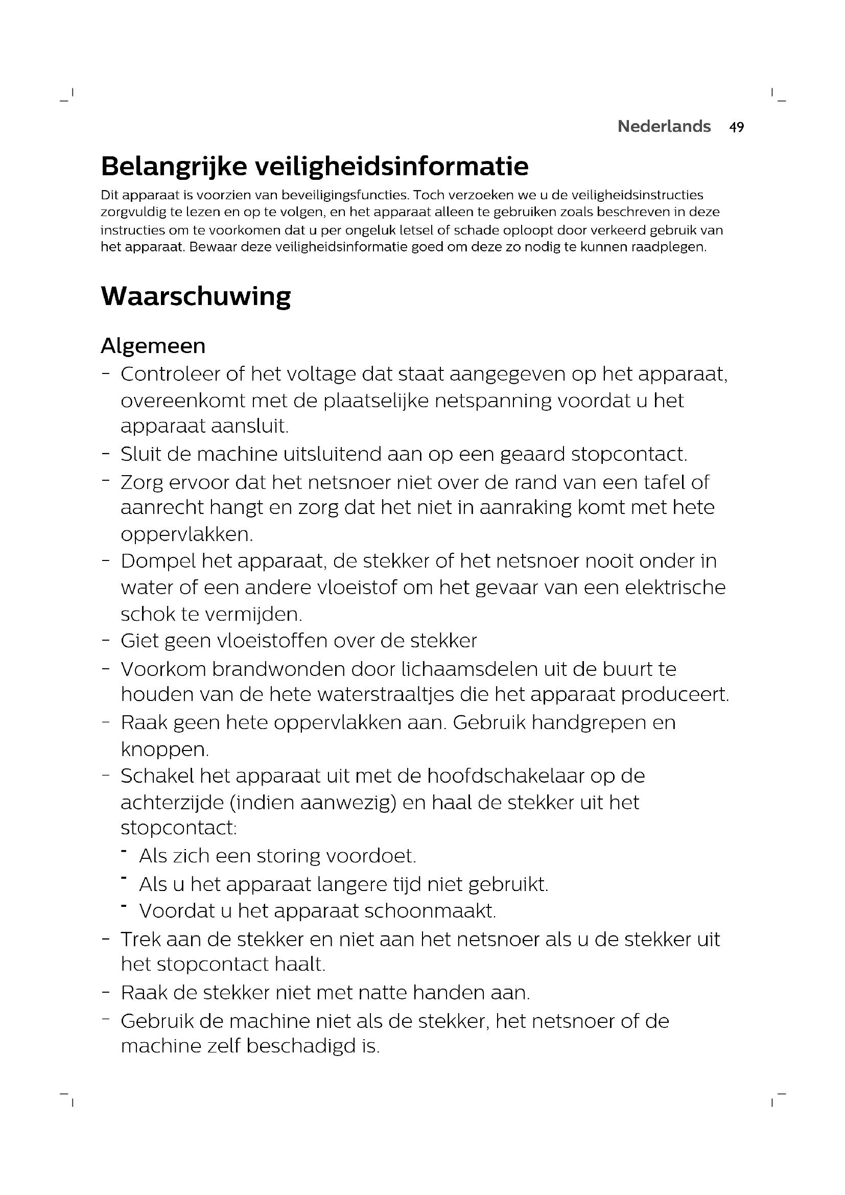 Voorkom brandwonden door er rekening mee te houden dat er straaltjes heet water of stoom uit het apparaat kunnen komen voordat er stoom of heet water wordt afgegeven.