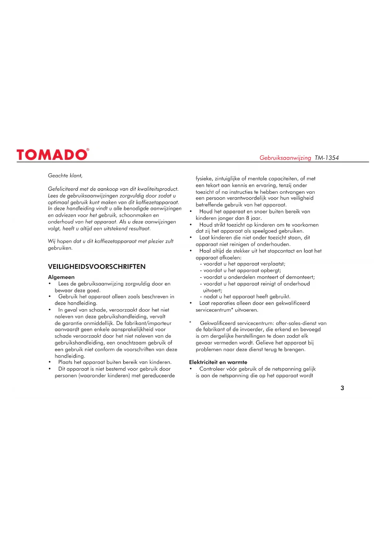 Wij feliciteren u met de aanschaf van een apparaatuit het TOMADO-assortiment.