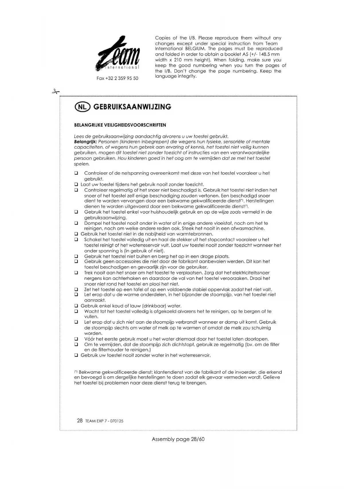 GEBRUIKSAANWIJZING EXP 7 TEAM