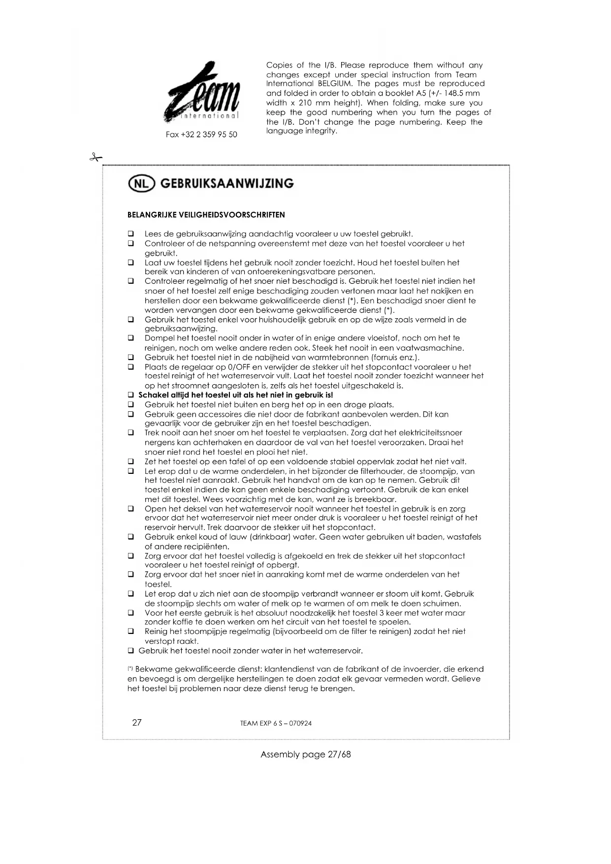 Download de handleiding voor uw Koffiemachine in PDF-formaat gratis! Vind uw handleiding EXP 6 S - TEAM en neem uw elektronisch apparaat weer in handen. Op deze pagina staan alle documenten die nodig zijn voor het gebruik van uw apparaat. EXP 6 S van het merk TEAM.