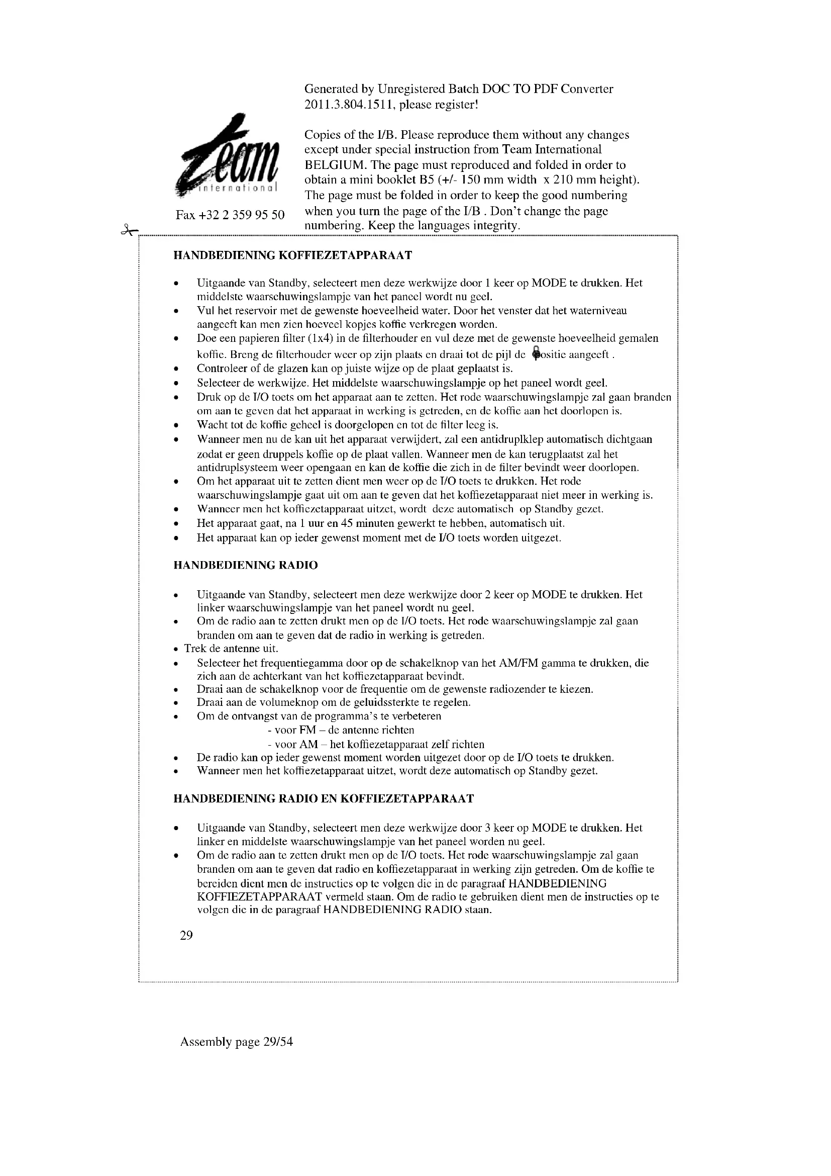 HANDBEDIENING RADIO EN KOFFIEZETAPPARAAT
