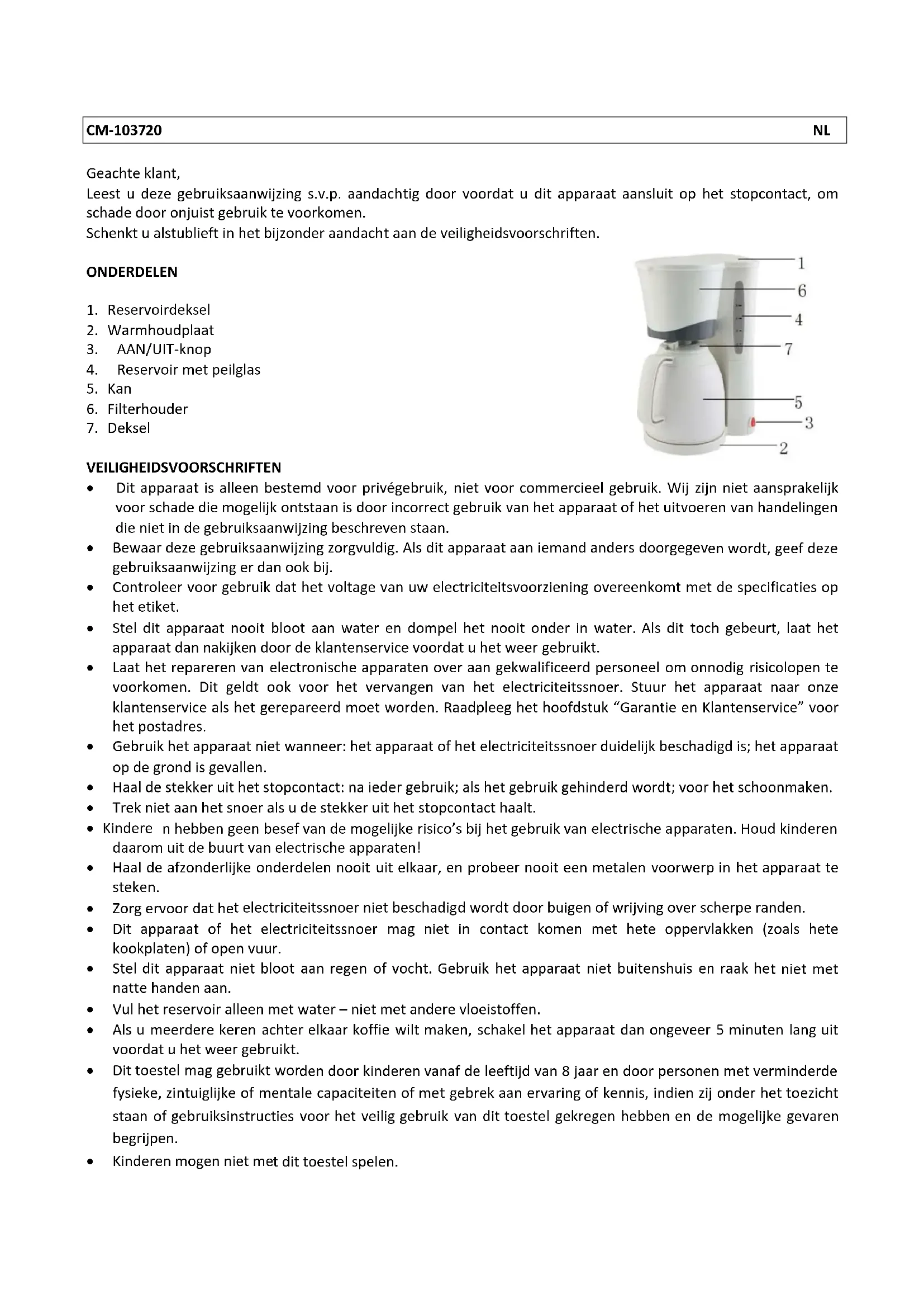 - Zet het koffiezetapparaat op een drogeplaats buiten bereik van kinderen wonneer het afgekoeld en schoongemaaakt is.