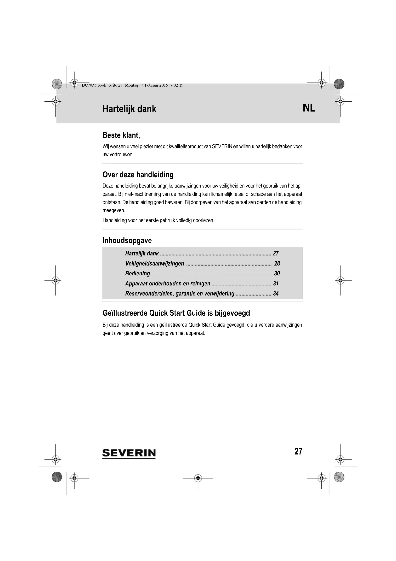 GEBRUIKSAANWIJZING BC 7035 SEVERIN