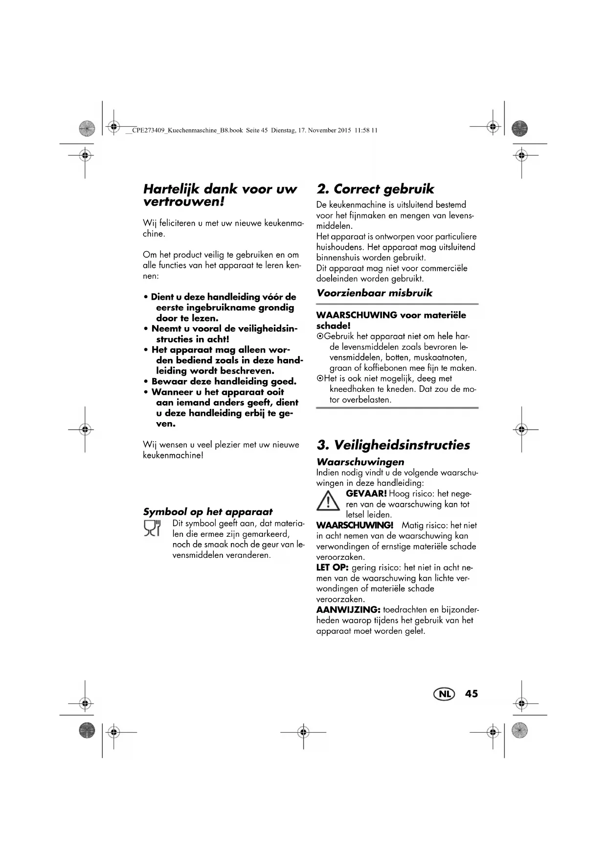Hartelijk dank voor uw vertrouwen! Wij feliciteren u met uw nieuwe keukenma- chine. Om het product veilig te gebruiken en om alle functies van het apparaat te leren ken- nen: