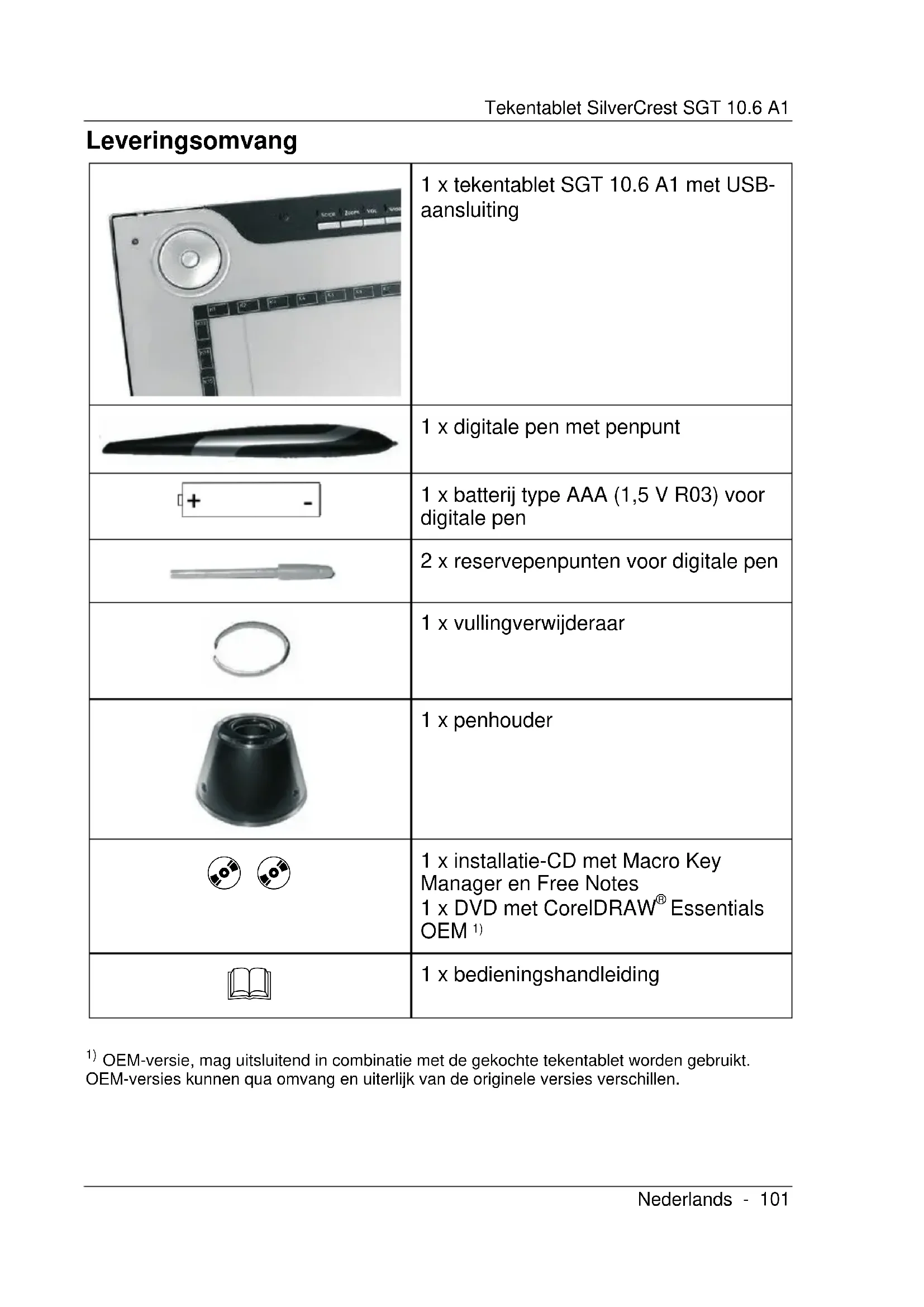OEM-versie, mag uitsluitend in combinatie met de gekochte tekentablet worden gebruikt. OEM-versies kunnen qua omvang en uiterlijk van de originele versies verschillen.Tekentablet SilverCrest SGT 10.6 A1