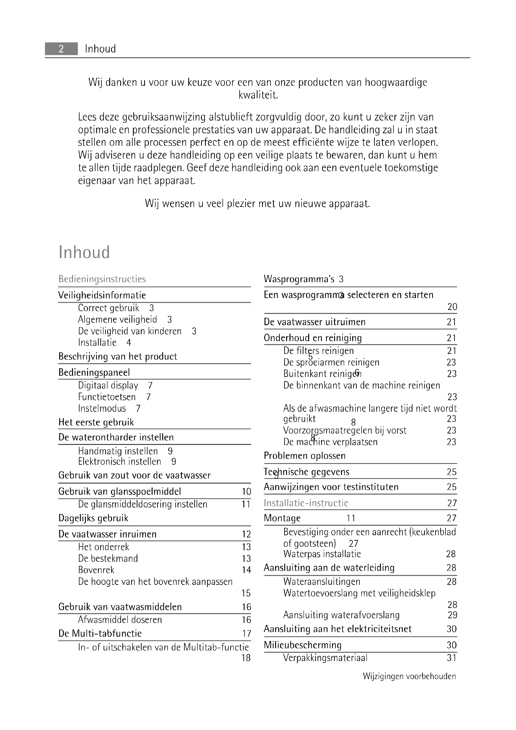 Aansluiting waterafvoerslang 29 Aansluiting aan het elektriciteitsnet 30 Milieubescherming 30 Verpakkingsmateriaal 31 Wijzigingen voorbehouden