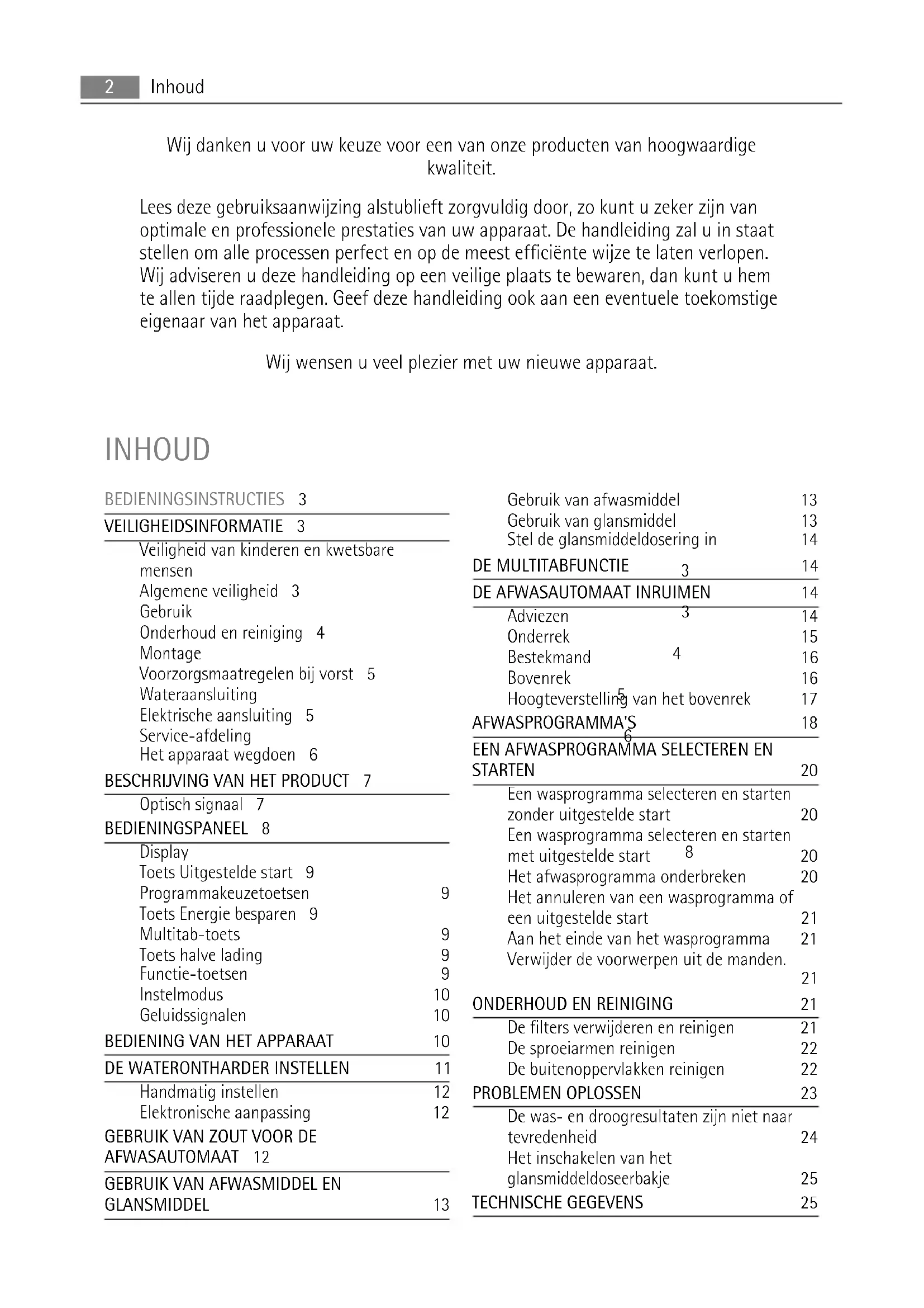 De filters verwijderen en reinigen 21 De sproeiarmen reinigen 22 De buitenoppervlakken reinigen 22 PROBLEMEN OPLOSSEN 23 De was- en droogresultaten zijn niet naar tevredenheid 24 Het inschakelen van het glansmiddeldoseerbakje 25 TECHNISCHE GEGEVENS 25 2 InhoudMILIEUBESCHERMING 26 Wijzigingen voorbehouden BEDIENINGSINSTRUCTIES VEILIGHEIDSINFORMATIE Lees deze handleiding zorgvuldig alvorens het apparaat te installeren of te gebruiken: