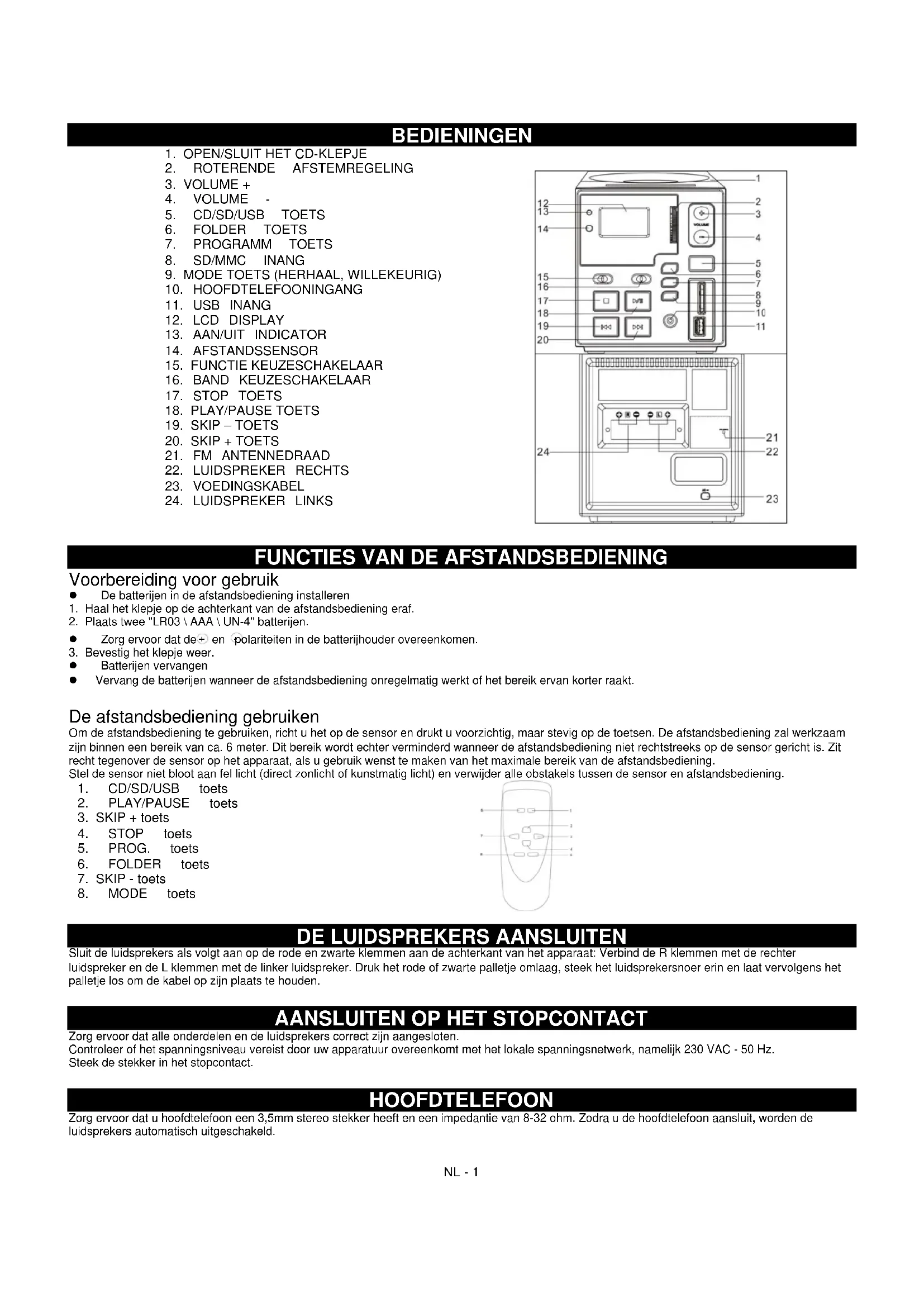 - CD/SD/USB toets