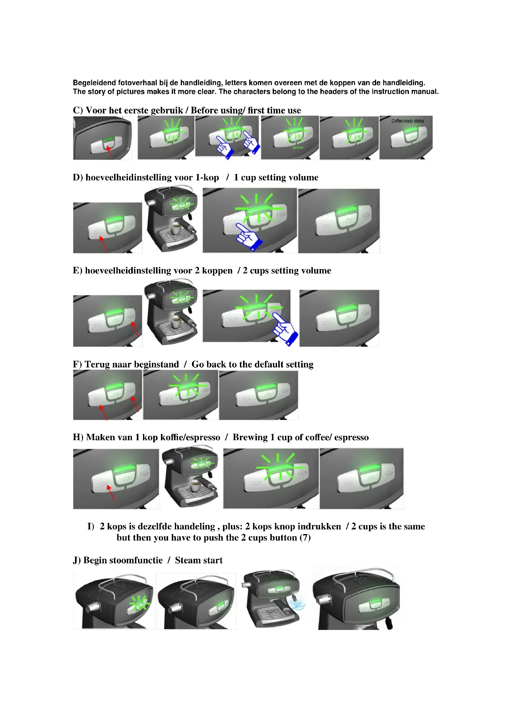 but then you have to push the 2 cups button (7) J) Begin stoomfunctie / Steam startNL A) Algemene Veiligheidsaanwijzingen.