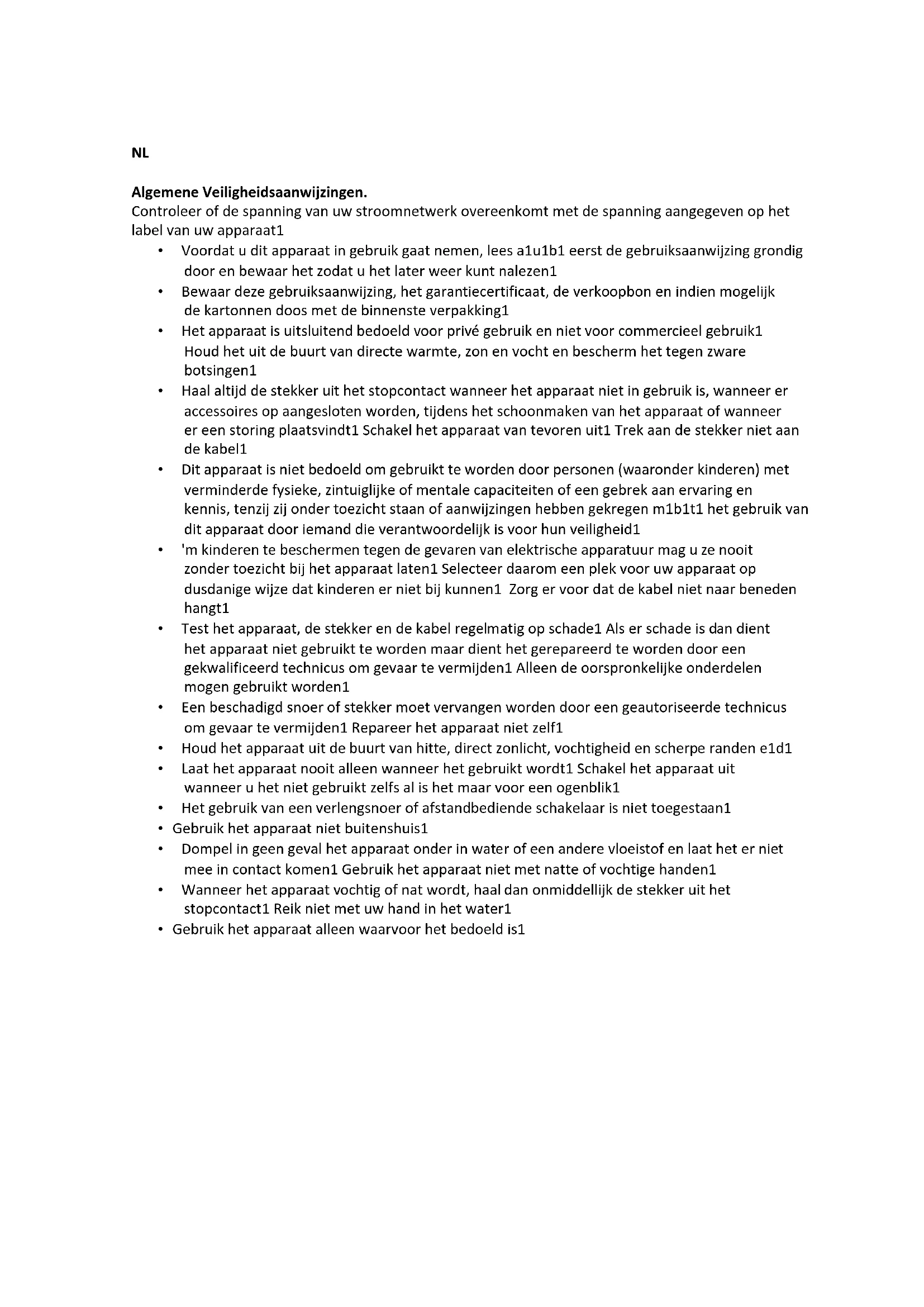 - Dit apparaat is niet bedoeld om gebruikt te worden door personen (waaronder kinderen) met verminderde fysieke, zintuiglijke of mentale capaciteiten of een gebrek aan ervaring en kennis, tenzij zij onder toezicht staan of aanwijzingen hebben gekregen m.b.t. het gebruik van dit apparaat door iemand die verantwoordelijk is voor hun veiligheid.