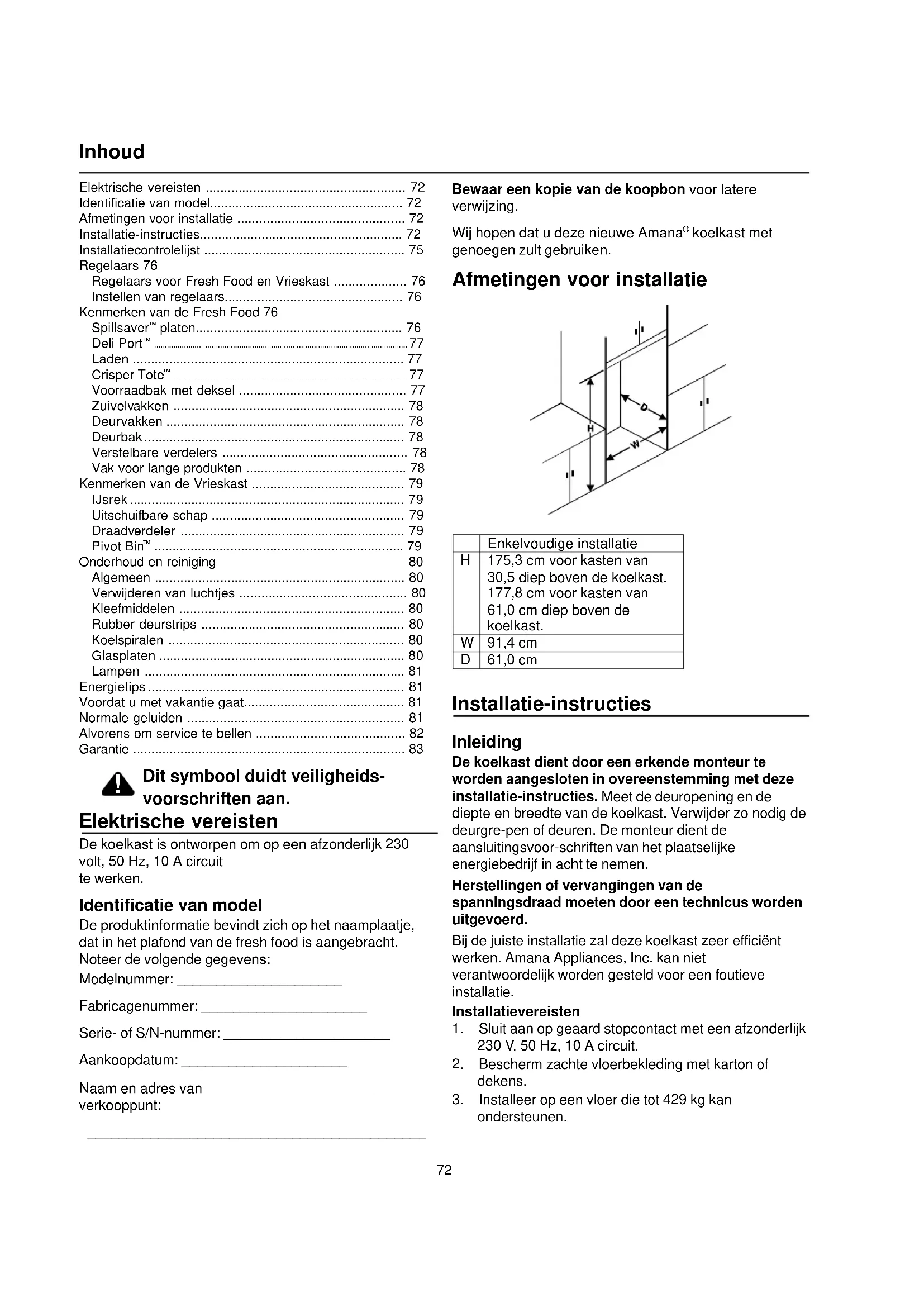 Bij de juiste installmente za alles koelkast zeer efficienwerken. Amana Appliances, Inc. kan nichtverantwoordelijk worden gesteld voor een foutieveinstallatie.