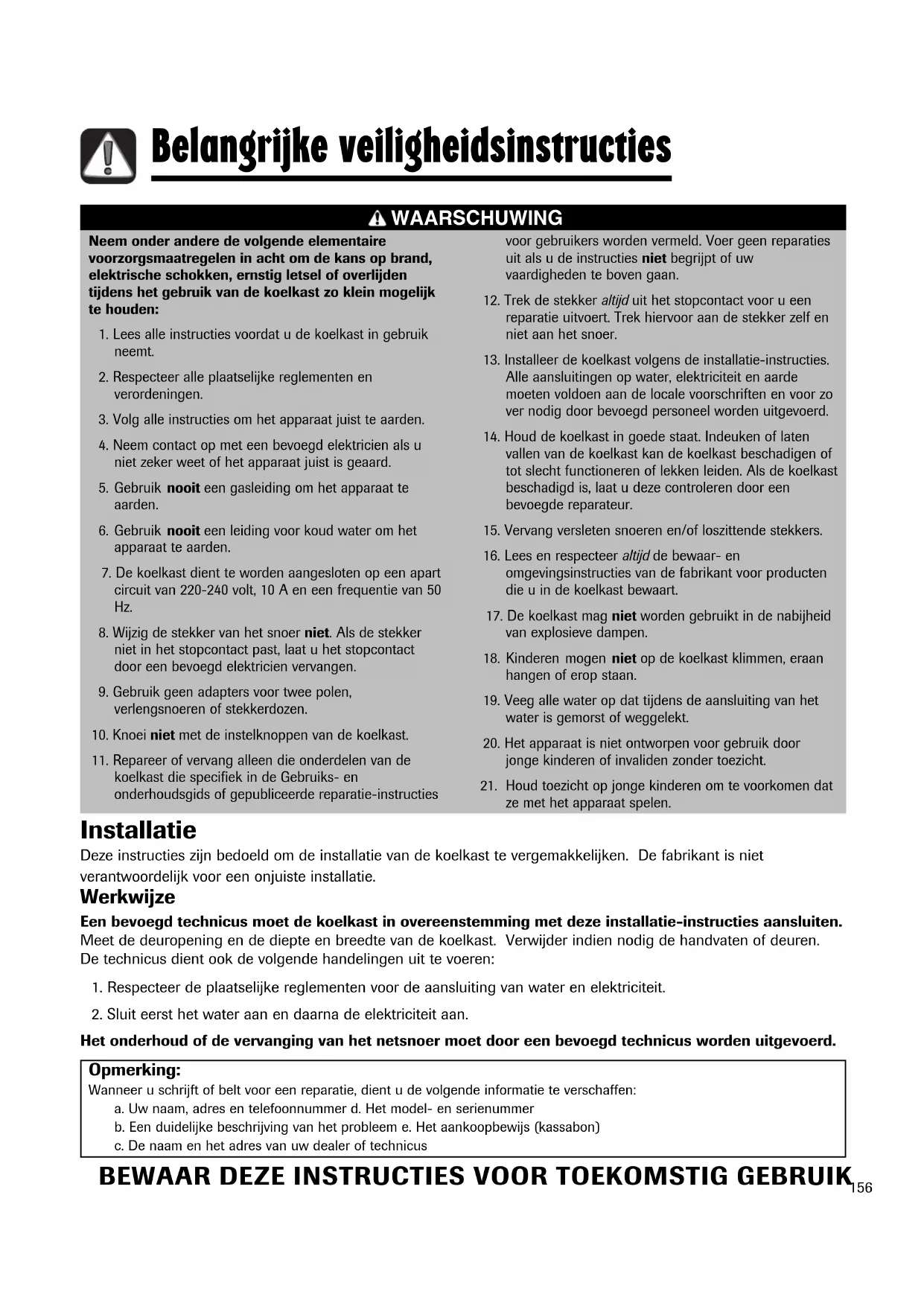 Lees alle instructies voordat u de koelkast in gebruik neemt.