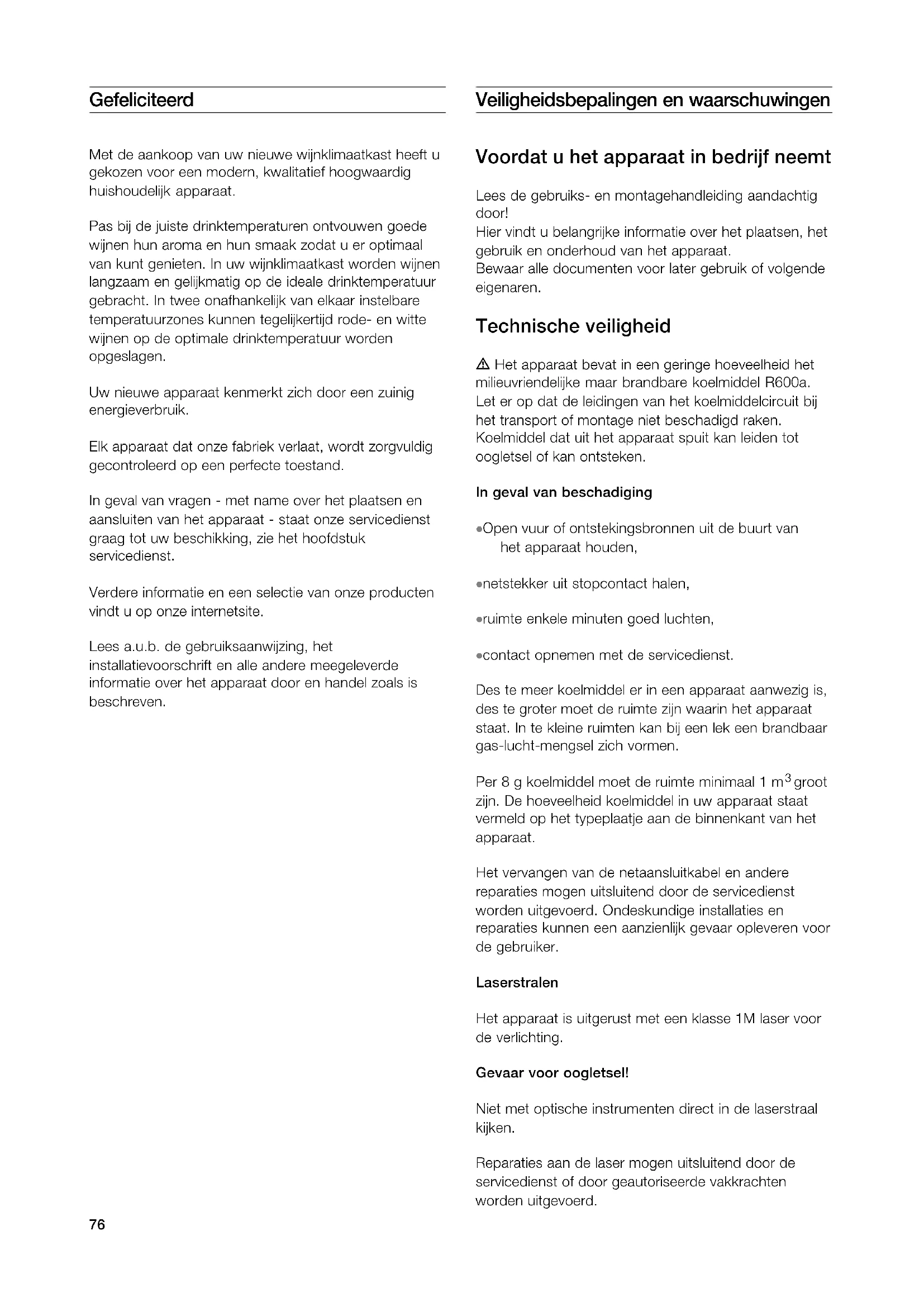 Veiligheidsbepalingen en waarschuwingen 76 ...