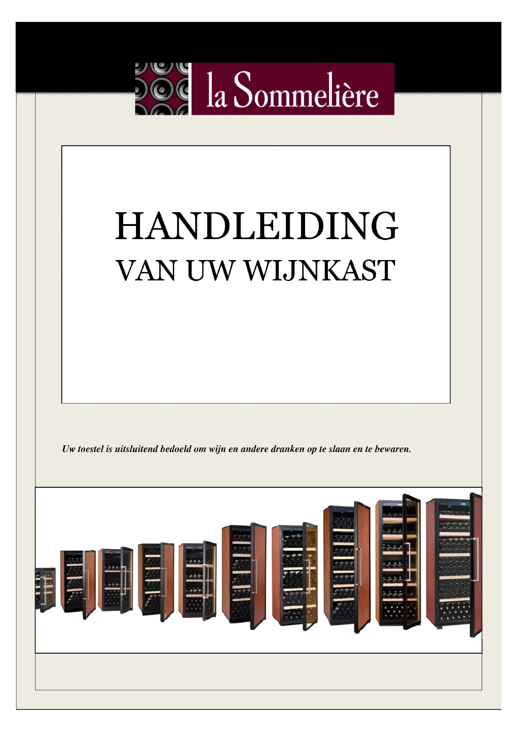 Uw toestel is uitsluitend bedoeld om wijn en andere dranken op te slaan en te bewaren.