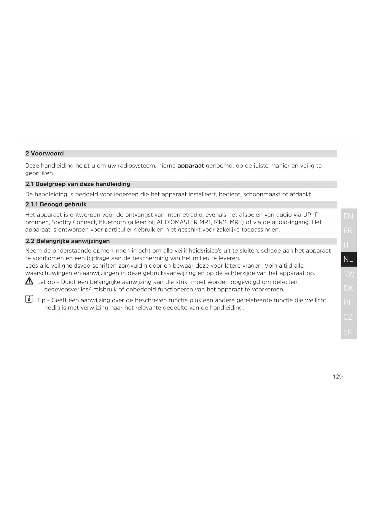 2 Voorwoord Deze handleiding helpt u om uw radiosysteem, hierna apparaat genoemd, op de juiste manier en veilig te gebruiken.