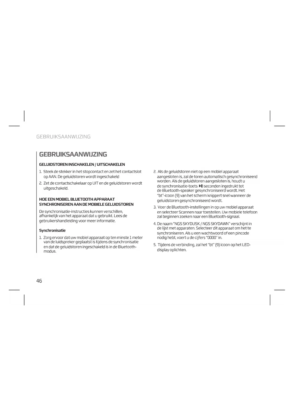 Skydusk - Luidspreker NGS - Gratis gebruiksaanwijzing en handleiding