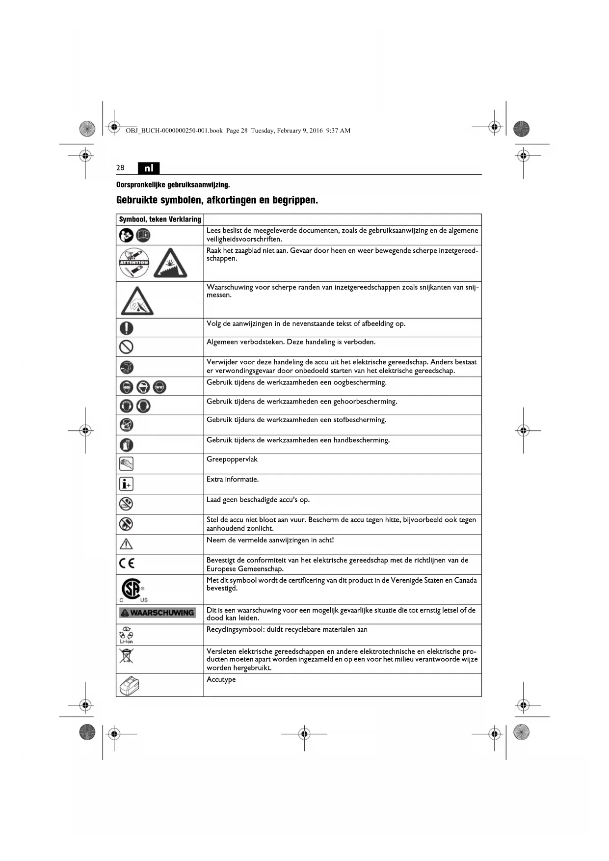 Gebruik alleen intacte, originele FEIN-accu's, die voor uw elektrische gereedschap bestem zich. Bij het werken met en het opladen van verkeerde, beschadigde, gereapereerde of opgeknapte accu's, nabootsingen en accu's van andere merken bestaat brandevaar en/of explosiegevaar.