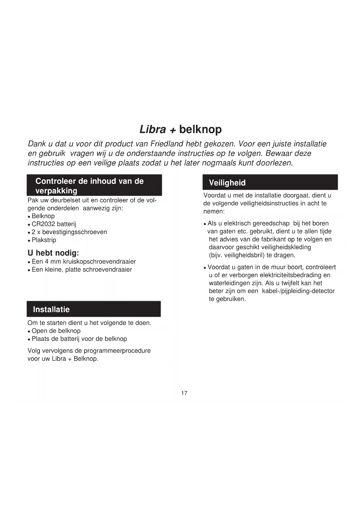 D930S Libra+ - Deurbellen FRIEDLAND - Gratis gebruiksaanwijzing en handleiding