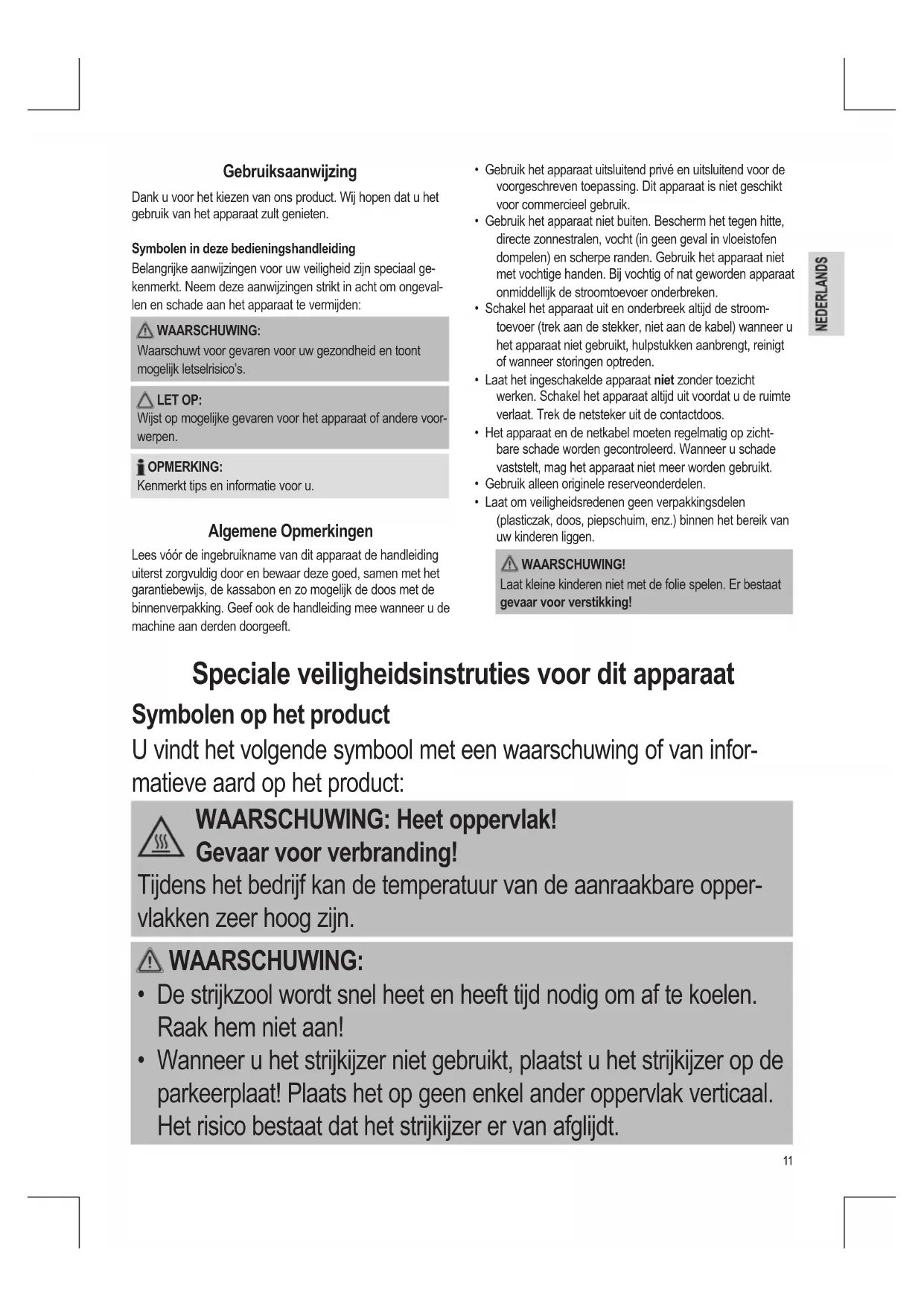 - Het strijkijzer moet worden gebruikt en neergezet op een stabiel, hittevast oppervlak.