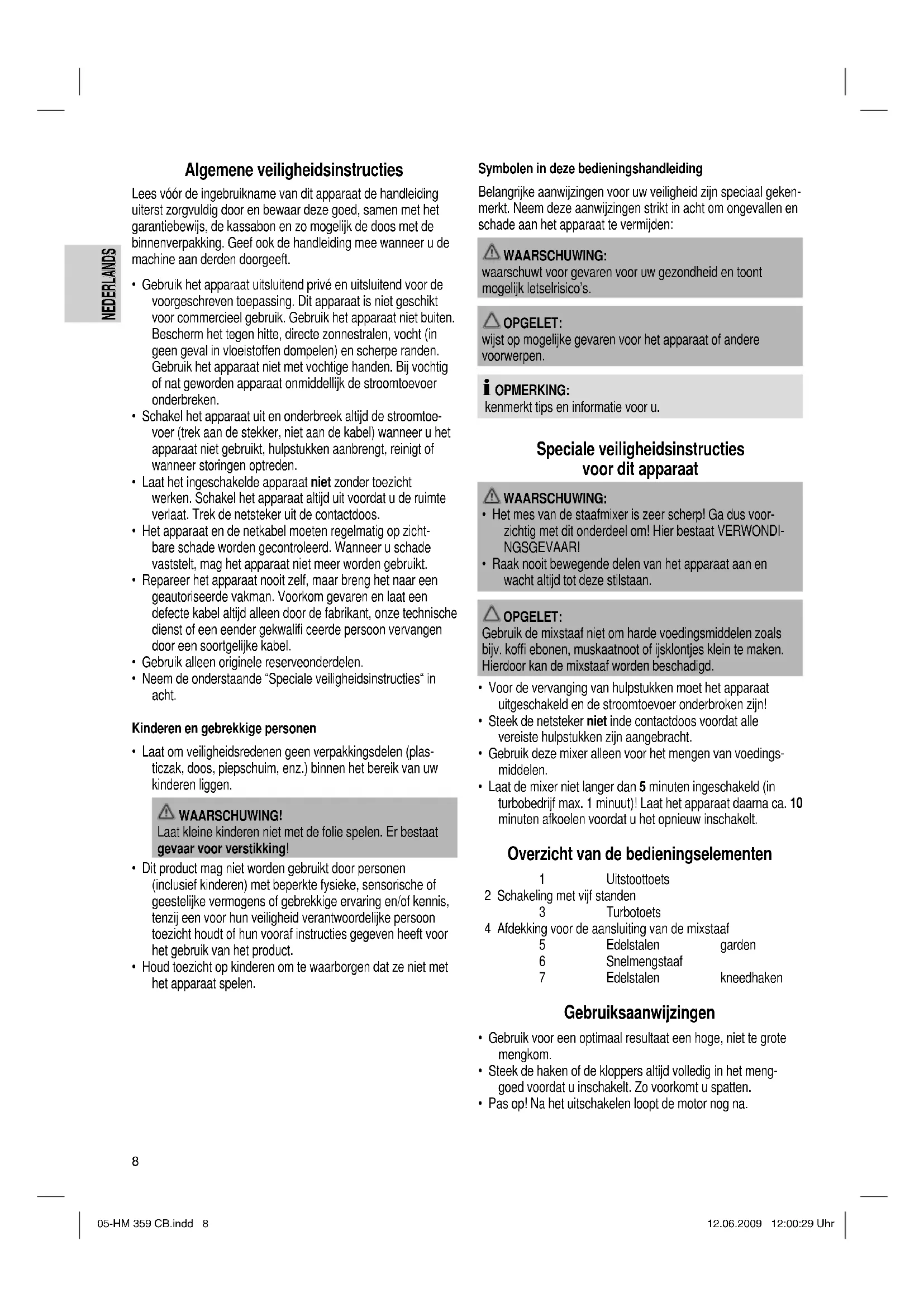 - Pas op! Na het uitschakelen loopt de motor nog na. 05-HM 359 CB.indd 805-HM 359 CB.indd 8 12.06.2009 12:00:29 Uhr12.06.2009 12:00:29 Uhr9 NEDERLANDS NEDERLANDS