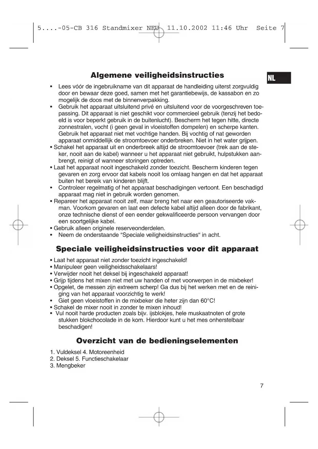 2. Deksel 5. Functieschakelaar