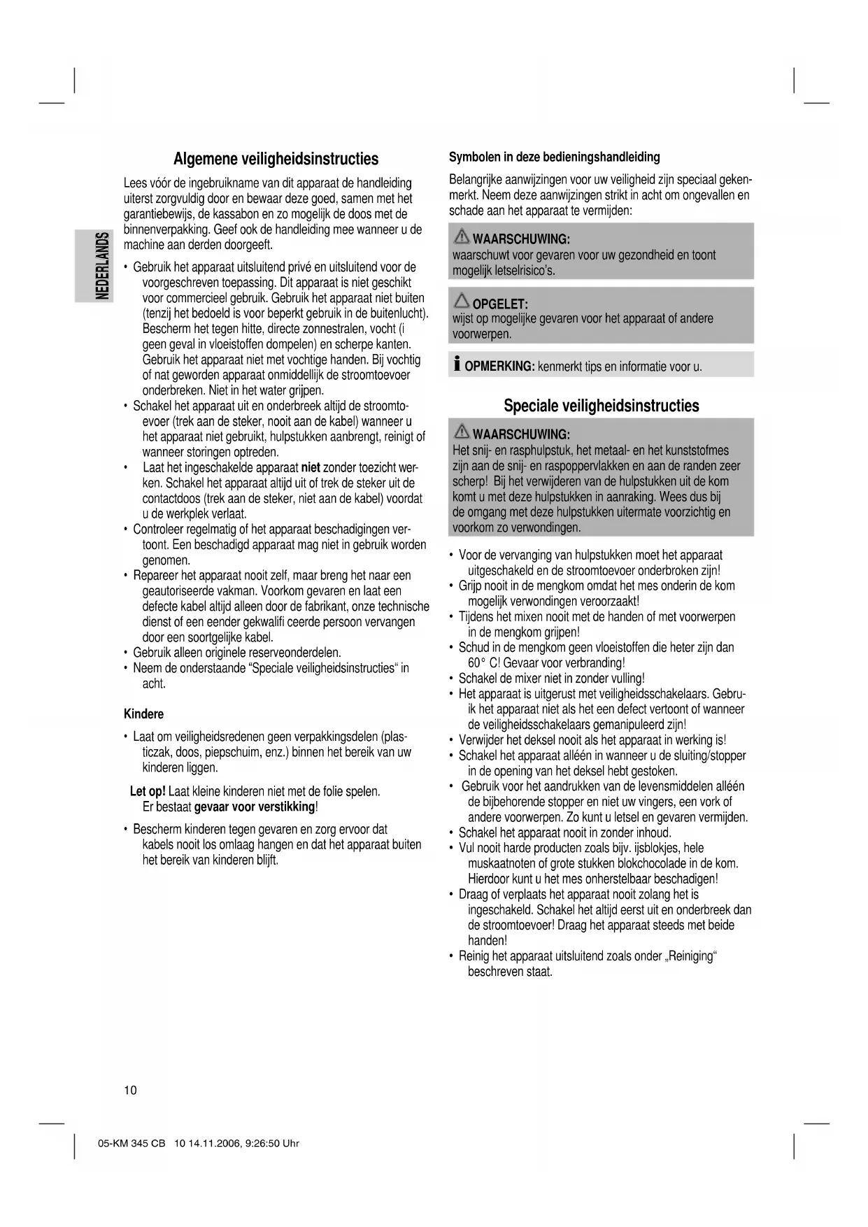 - Reinig het apparaat uitsluitend zoals onder „Reiniging“ beschreven staat. 05-KM 345 CB 10 14.11.2006, 9:26:50 UhrNEDERLANDS