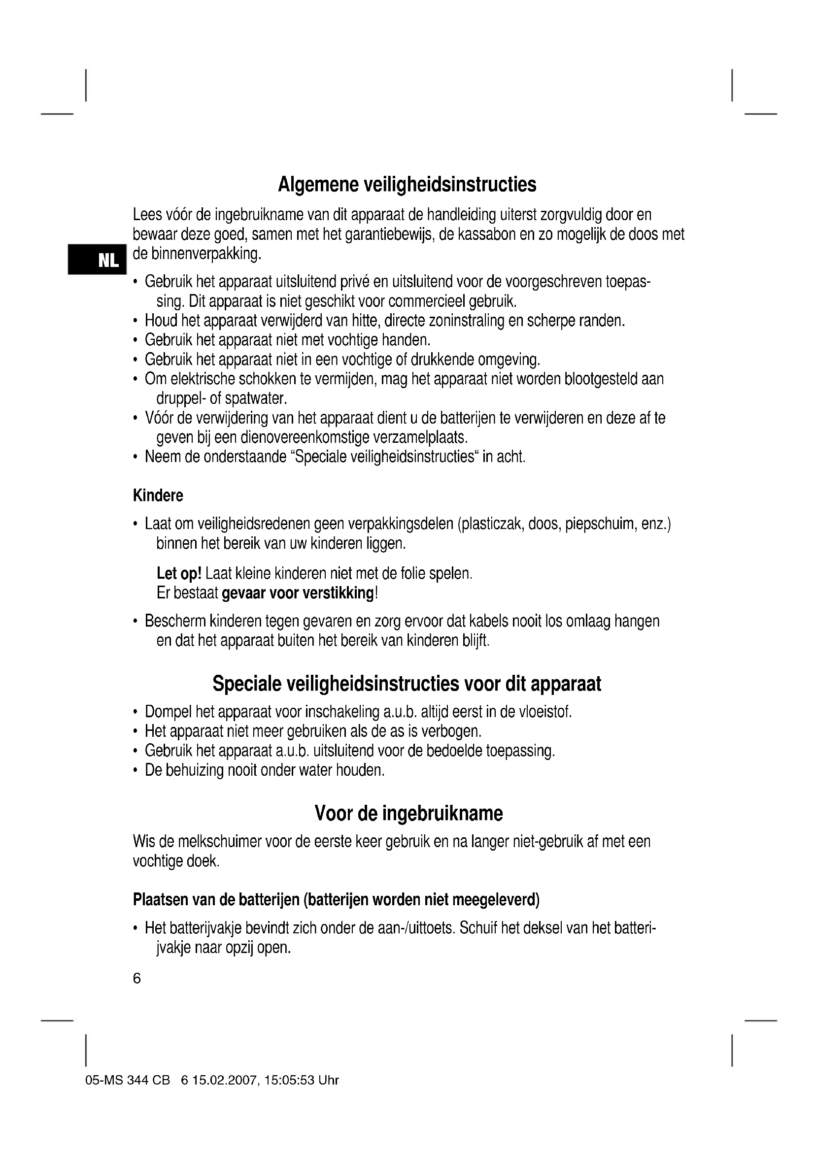 - Gebruik geen bijtende schoonmaakmiddelen of schuurmiddelen. 05-MS 344 CB 7 15.02.2007, 15:05:54 UhrNL