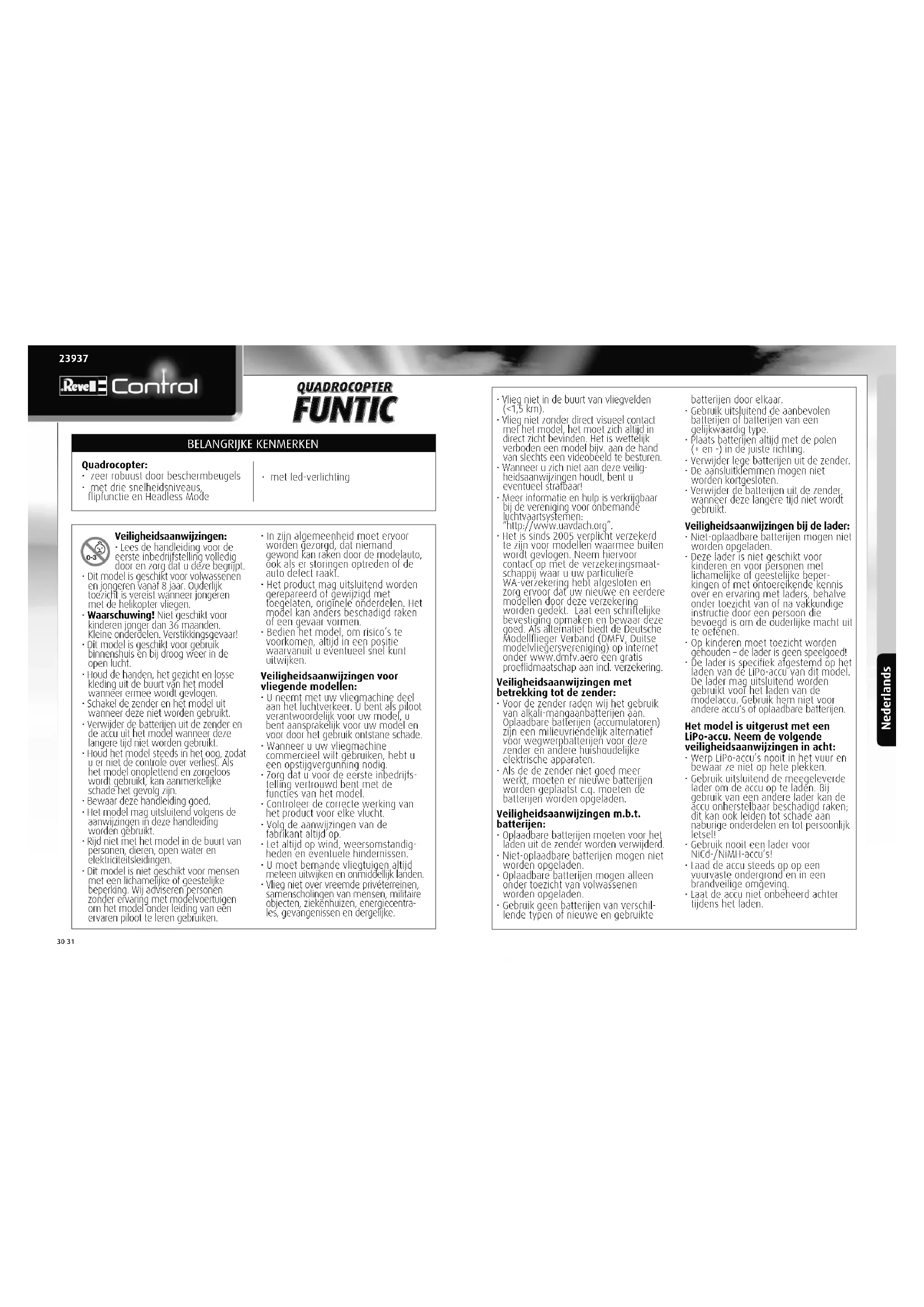 Bewaar deze handleiding goed. - Het model mag uitsluitend volgens de aanwijgen in die handleiding worden gebruikt.