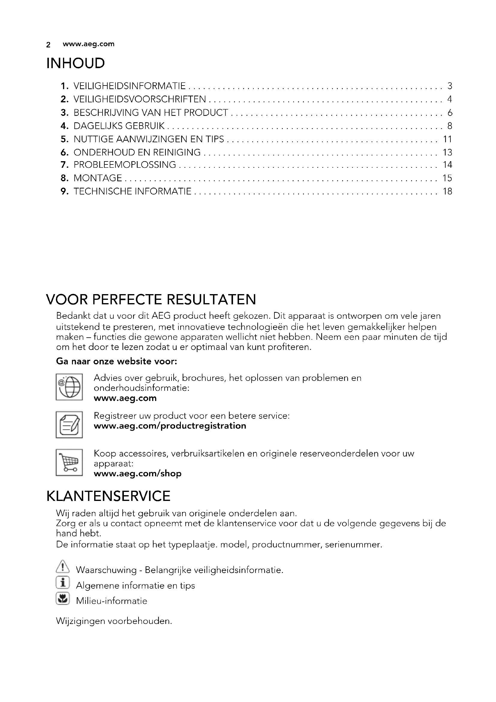 Bedankt dat u voor dit AEG product heeft gekozen. Dit apparaat is ontworpen om vele jarenuitstekend te presteren, met innovatieve technologieën die het leven gemakkelijker helpenmake - functies die gewone apparaten wellicht nicht hebben. Neem eenaar minuten de tijdom het door te lezen zodate u er optimaal van kunt profiteren.
