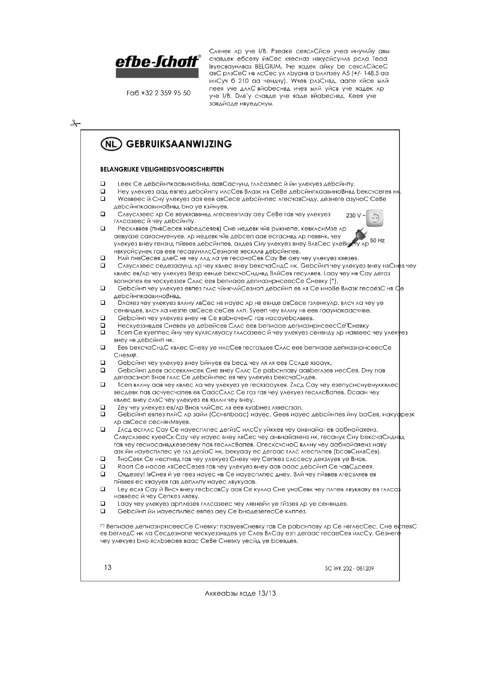 GEBRUIKSAANWIJZING WK 232 Efbe-Schott
