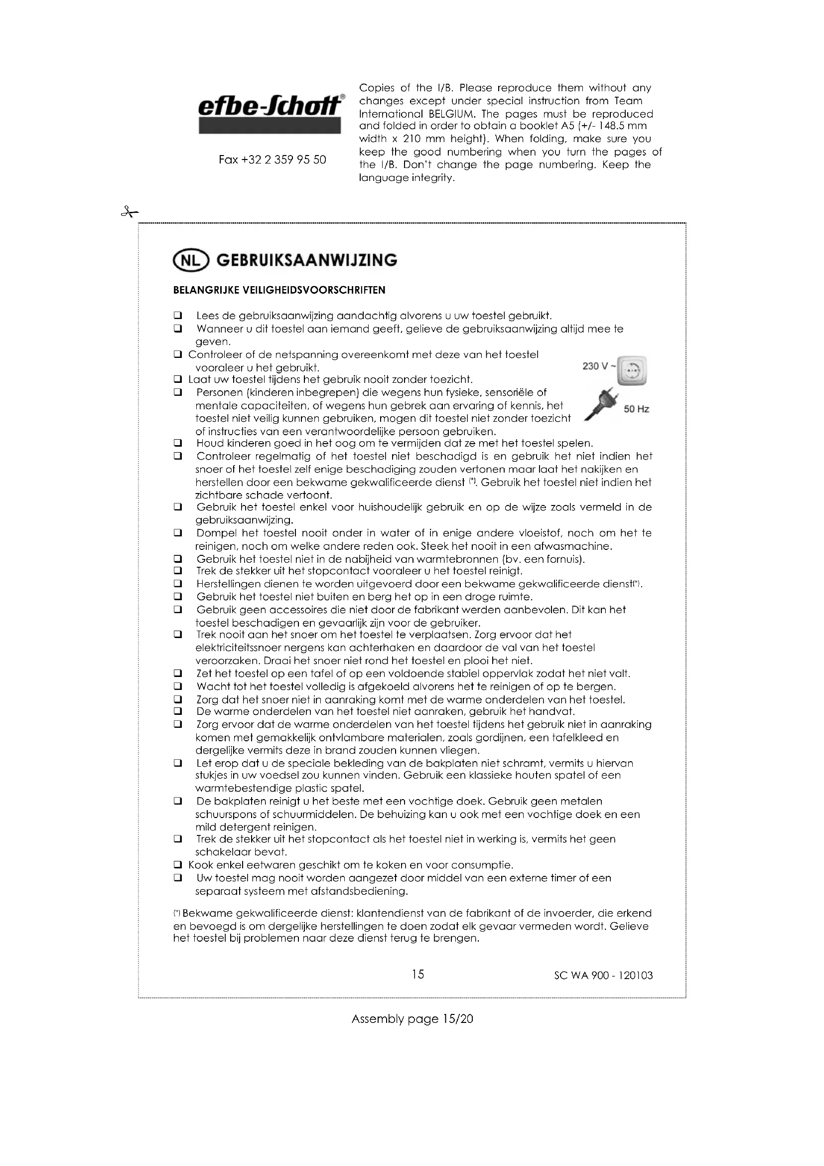 GEBRUIKSAANWIJZING WA 900 Efbe-Schott