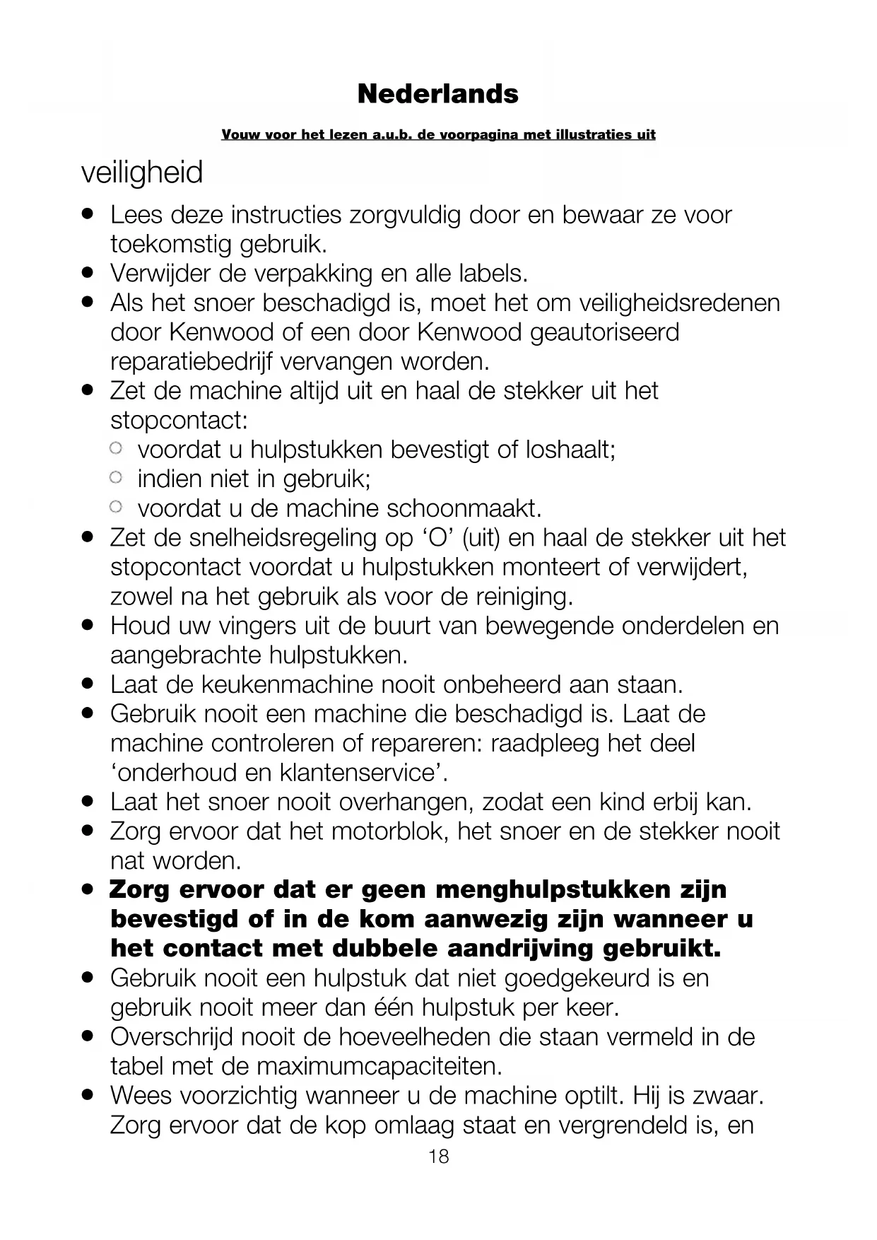 Gebruik het apparaat alleen voor het huishoudelijke gebruik waarvoor het is bedoeld. Kenwood kan niet aansprakelijk worden gesteld in het geval dat het apparaat niet correct is gebruikt, of waar deze instructies niet worden opgevolgd.