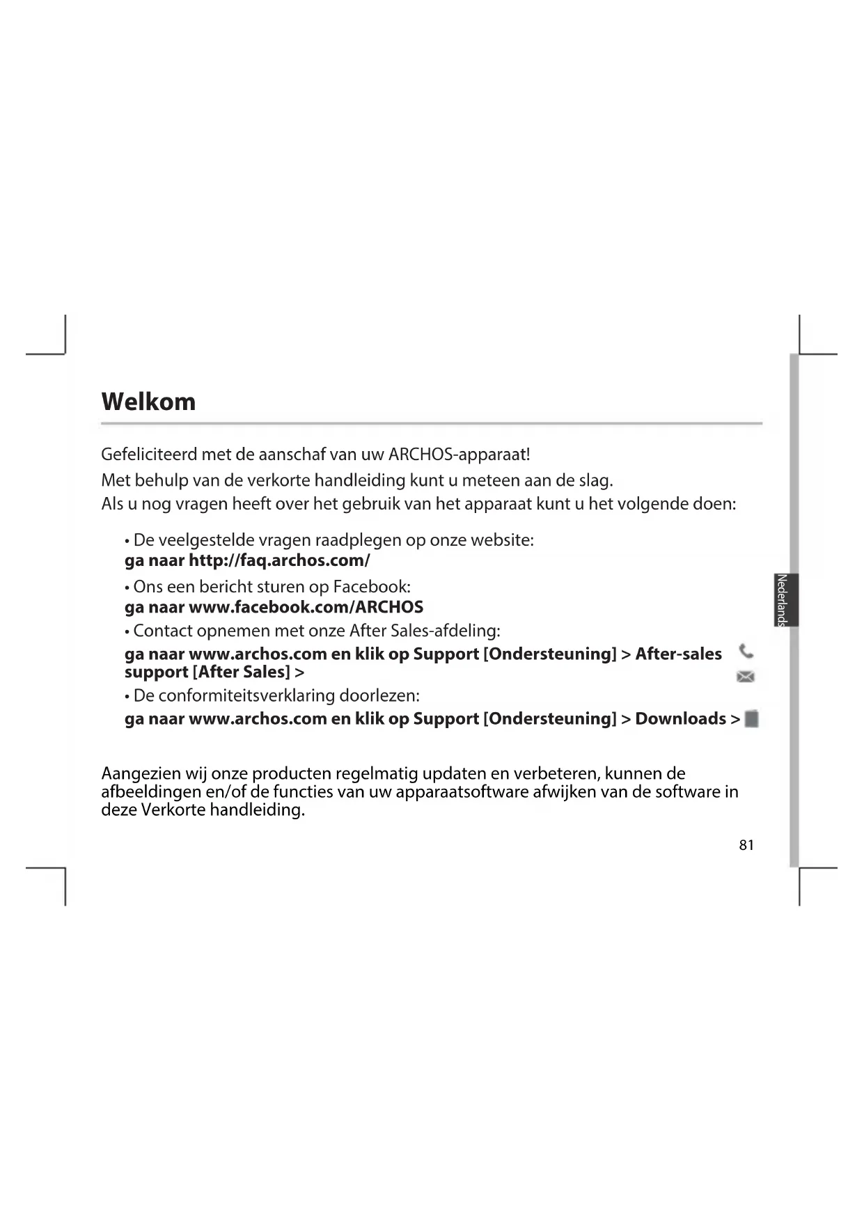 - Ons een bericht sturen op Facebook: ga naar www.facebook.com/ARCHOS