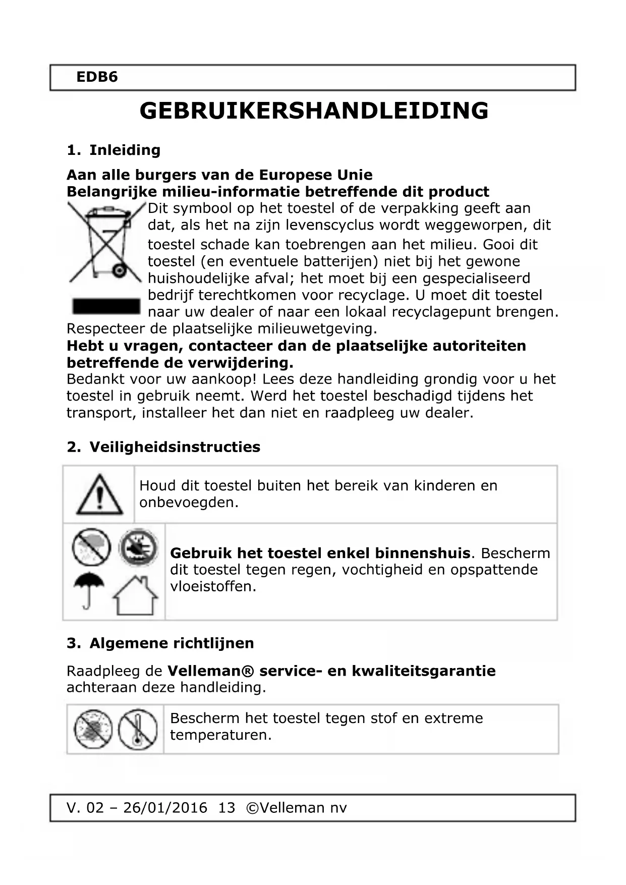 Hierbij verklaar ik, Velleman NV, dat het type radioapparatuur [EDB6] + [EDB6/TX] conform is met Richtlijn 1999/5/EC.