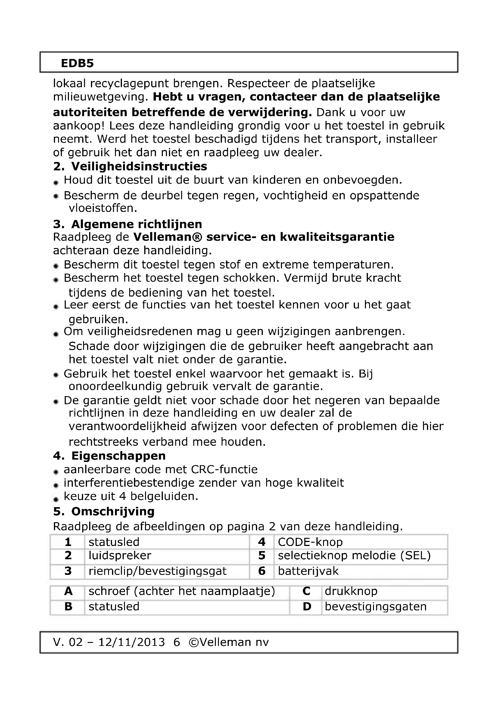 Raadpleeg de Velleman® service- en kwaliteitsgarantie achteraan deze handleiding.