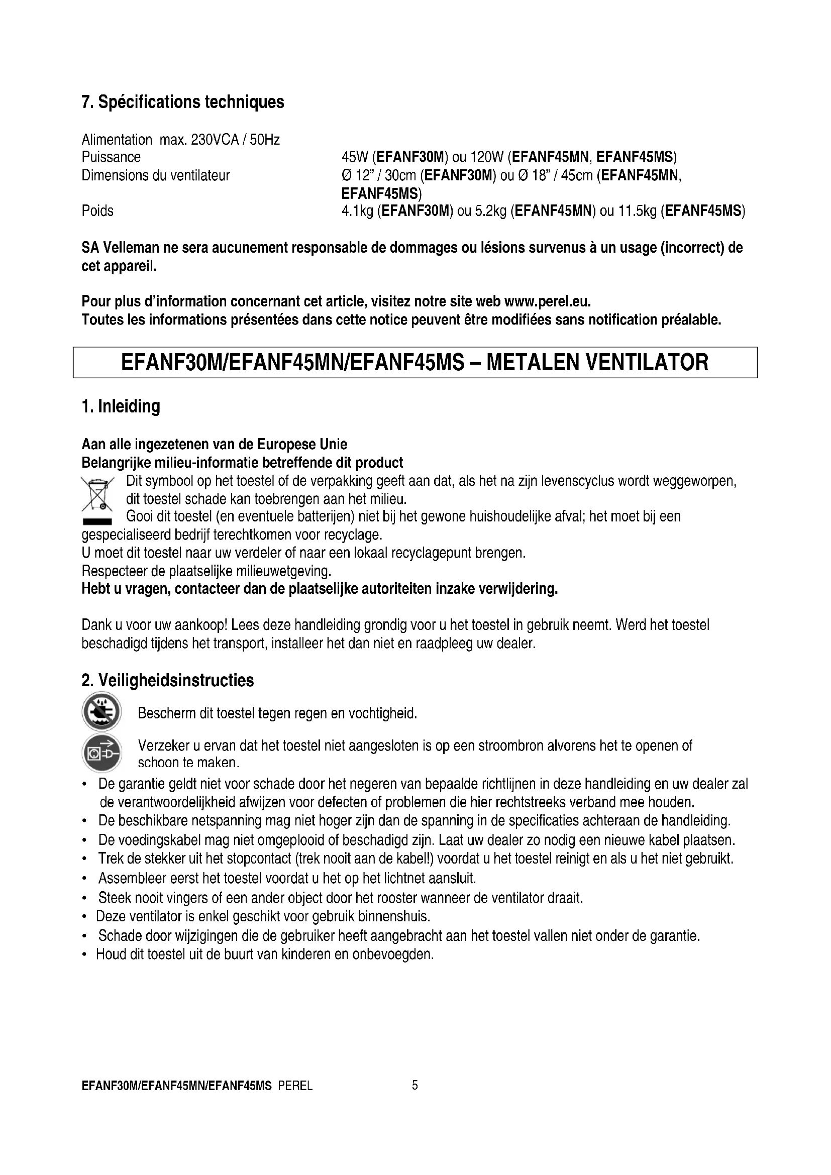 GEBRUIKSAANWIJZING EFANF30M Perel