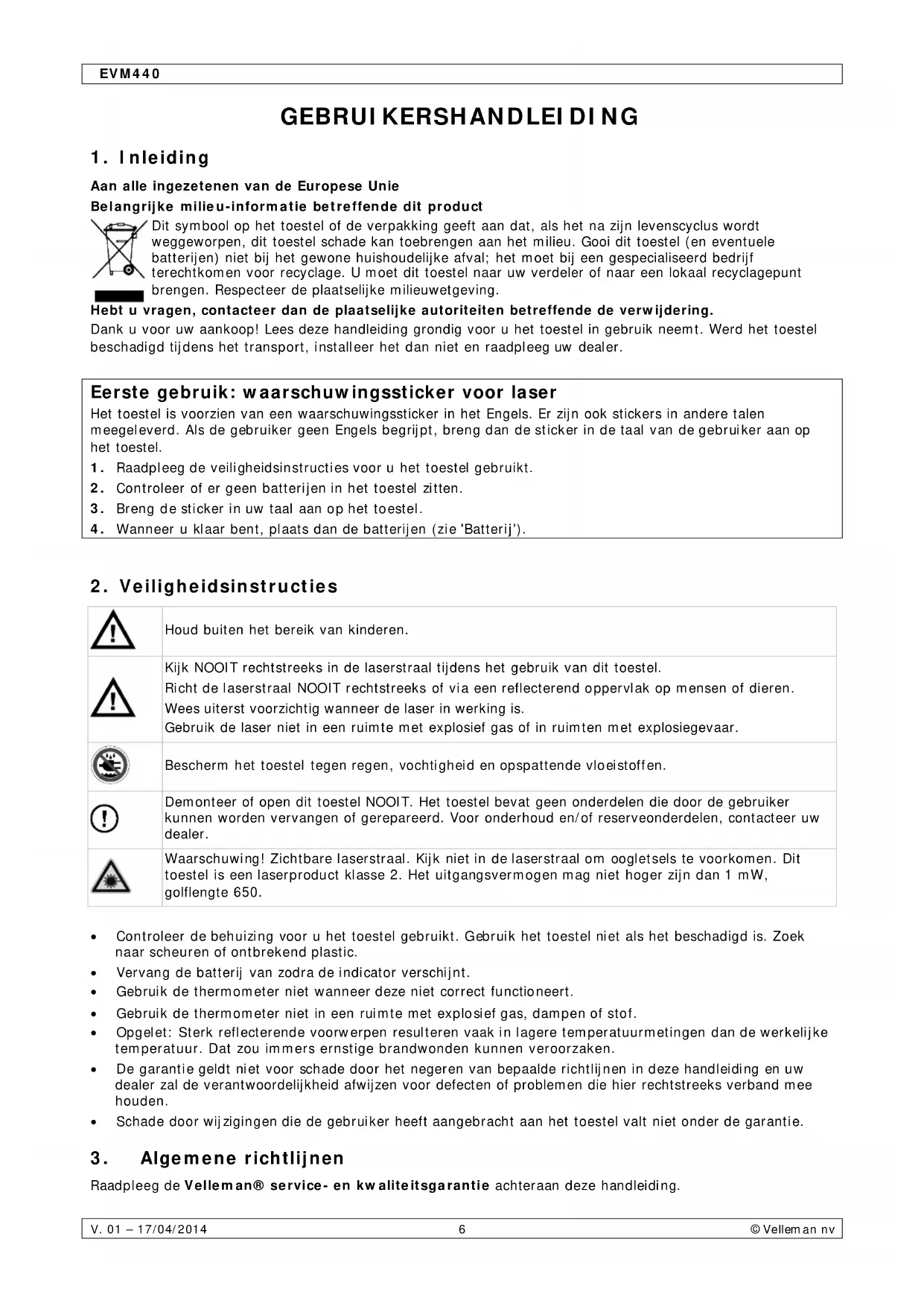 Raadpleeg de Velleman® service- en kwaliteitsgarantie achteraan deze handleiding.