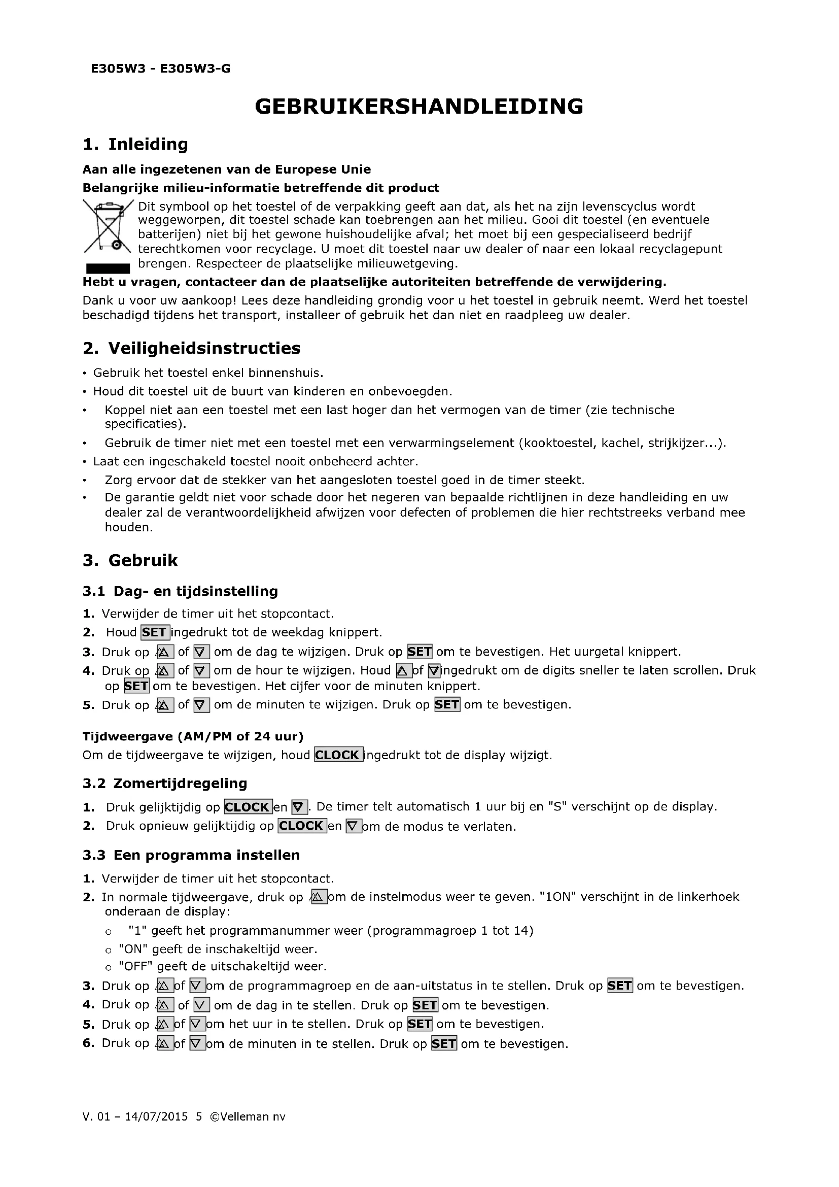 GEBRUIKSAANWIJZING E305W3G Perel