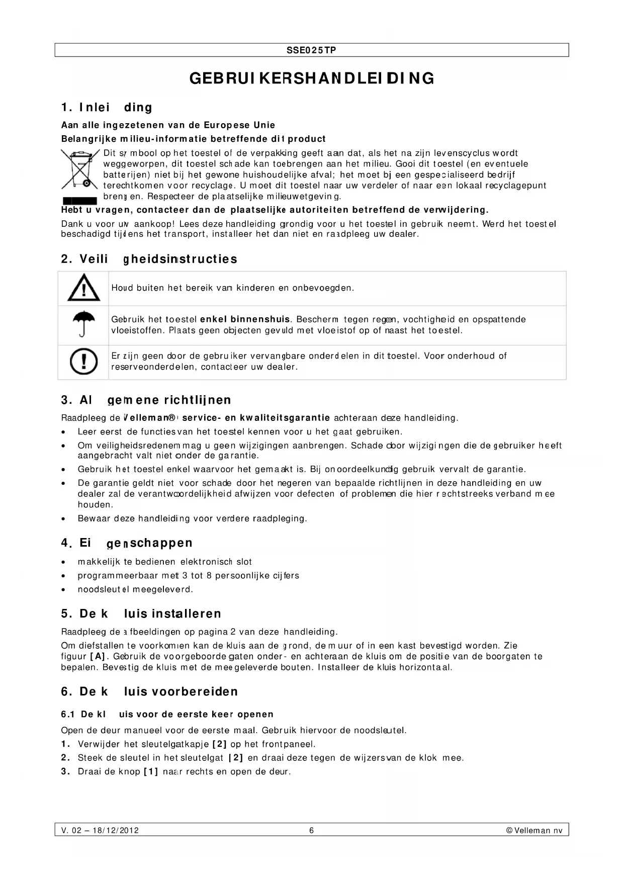 Raadpleeg de Velleman® service- en kwaliteitsgarantie achteraan dele handleiding.