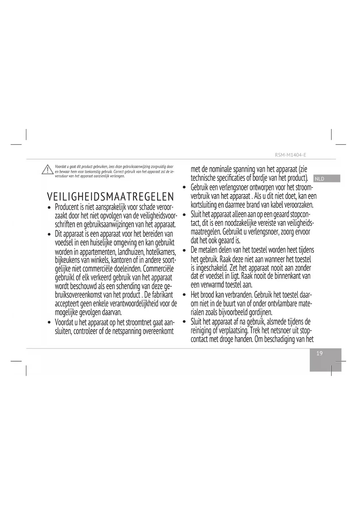 Verpakkingsmateriaal (folie, schuimplastic etc.) kun- nen gevaarlijk voor de gezondheid van het kind zijn.RSM-M1404-E