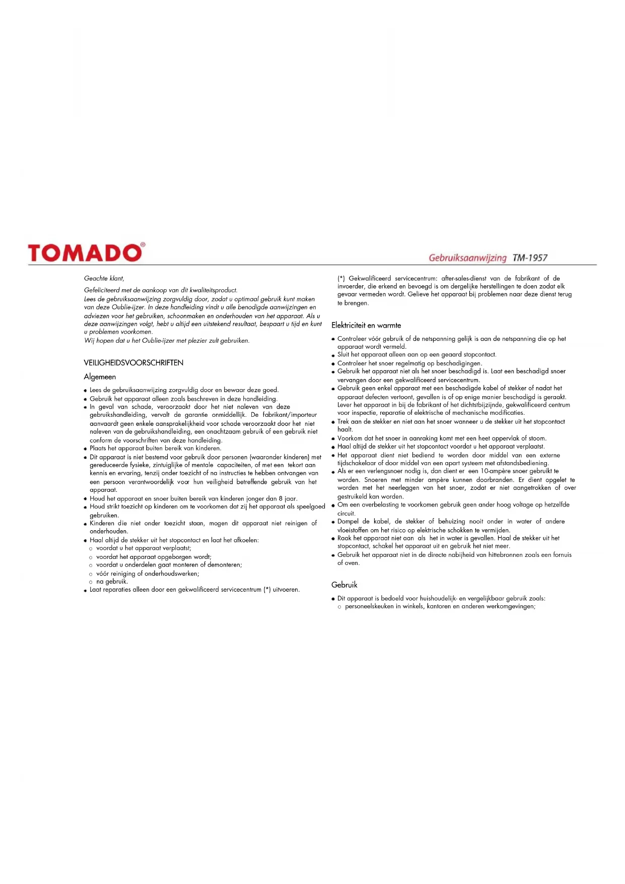 GEBRUIKSAANWIJZING TM1957 Tomado