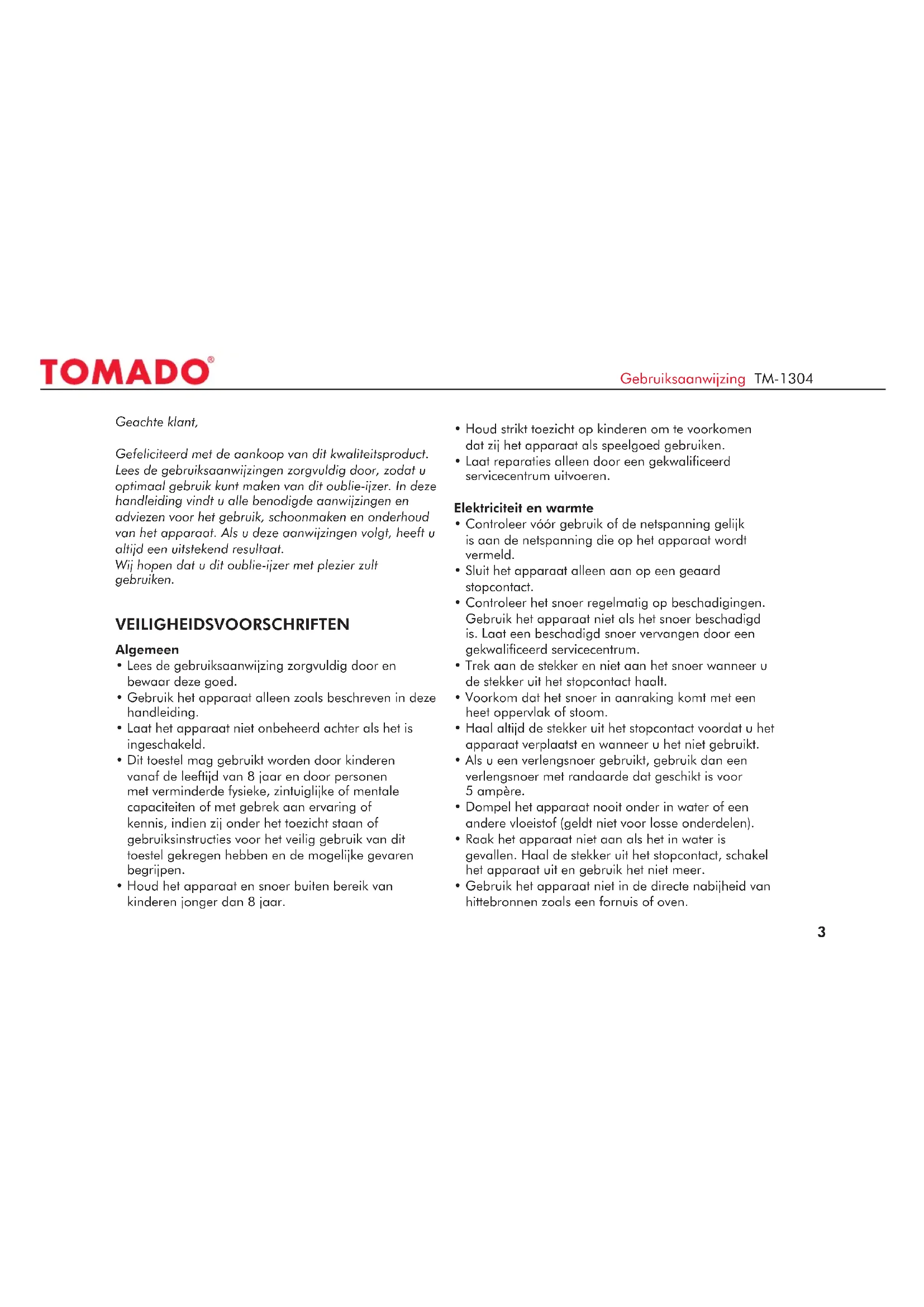 GEBRUIKSAANWIJZING TM1304 Tomado